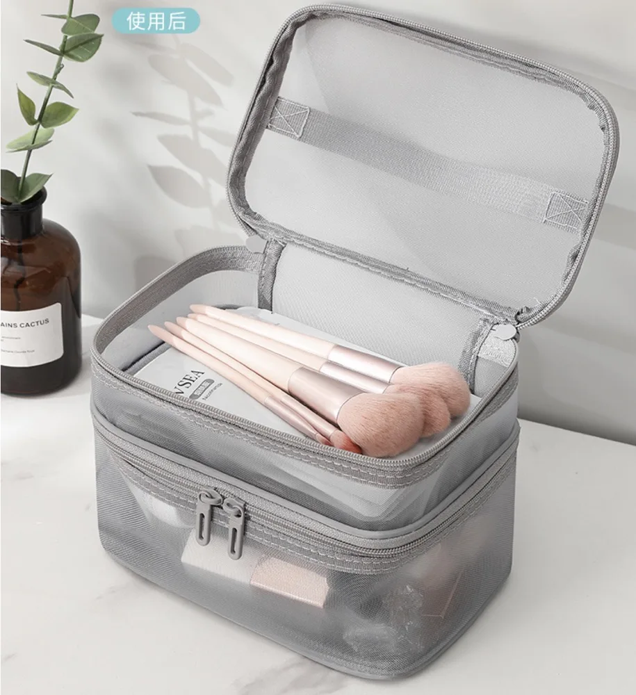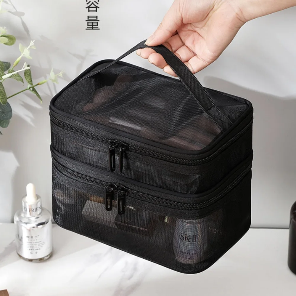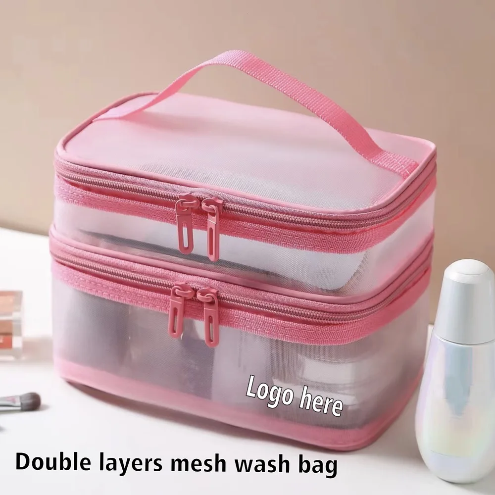 Custom Logo Large Capacity Travel Toiletry Bag Multi Functional Zipper Double Layers Storage Make up Organizer Cosmetic Case