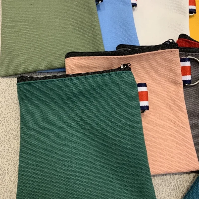 12oz Canvas Pencil Case Solid Color Custom Logo Print Travel Wash Bag Cosmetic Makeup Coin Car Key Storage Bag with Hook