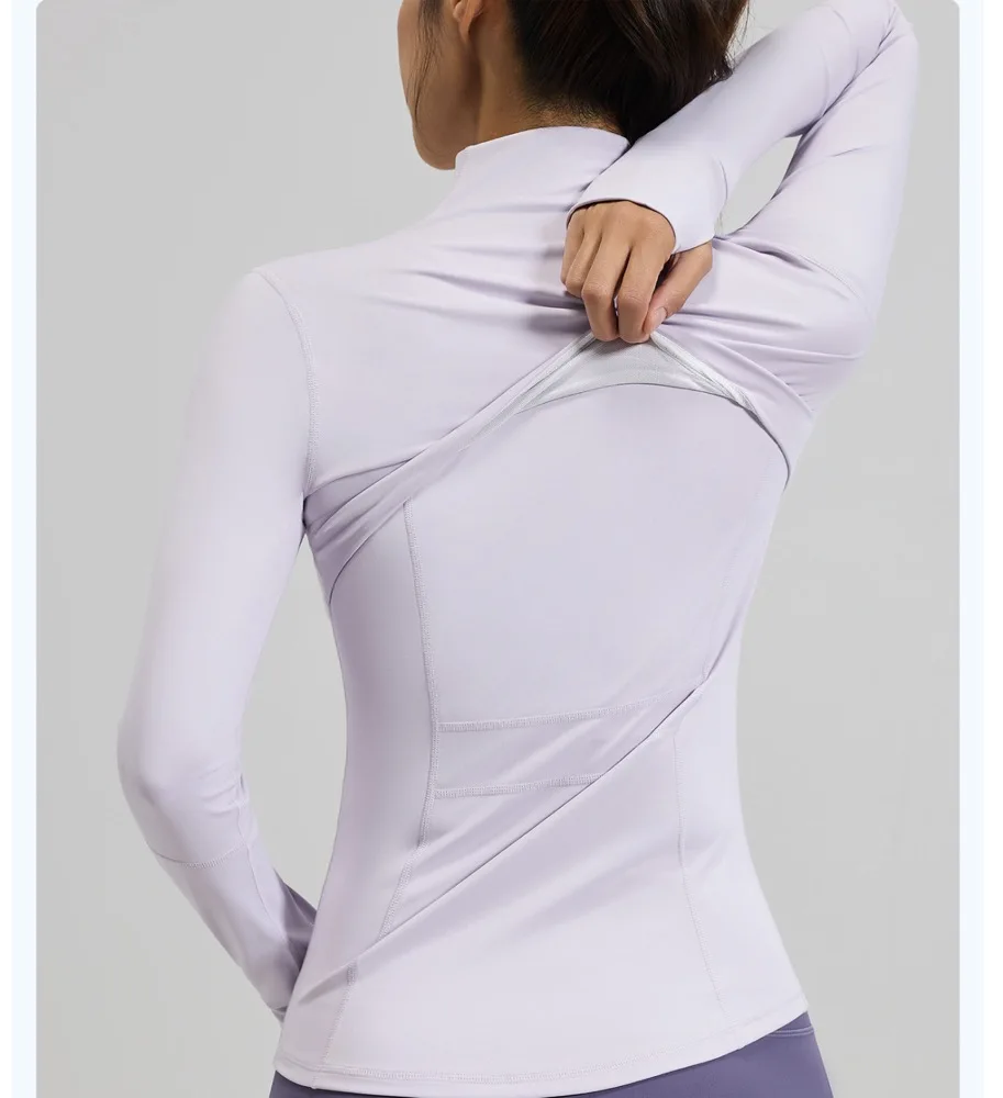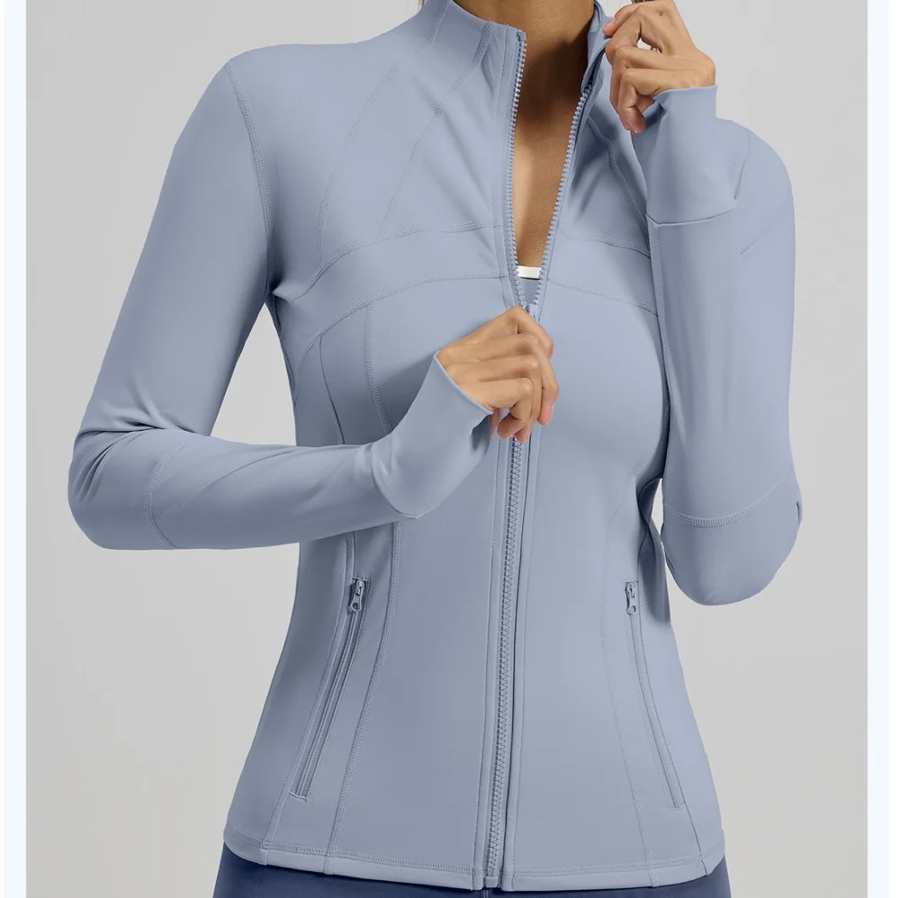 Custom Logo Women's Sports Breathable Concealed Pockets Yoga Coat Full Zipper Stand-up Collar Running Train Fitness Yoga Top