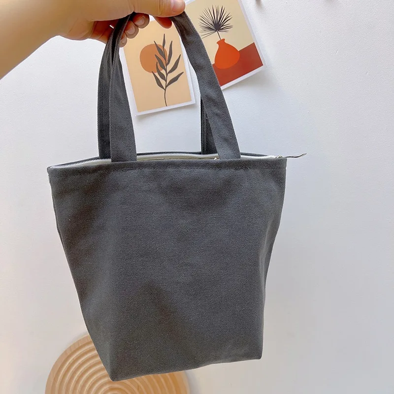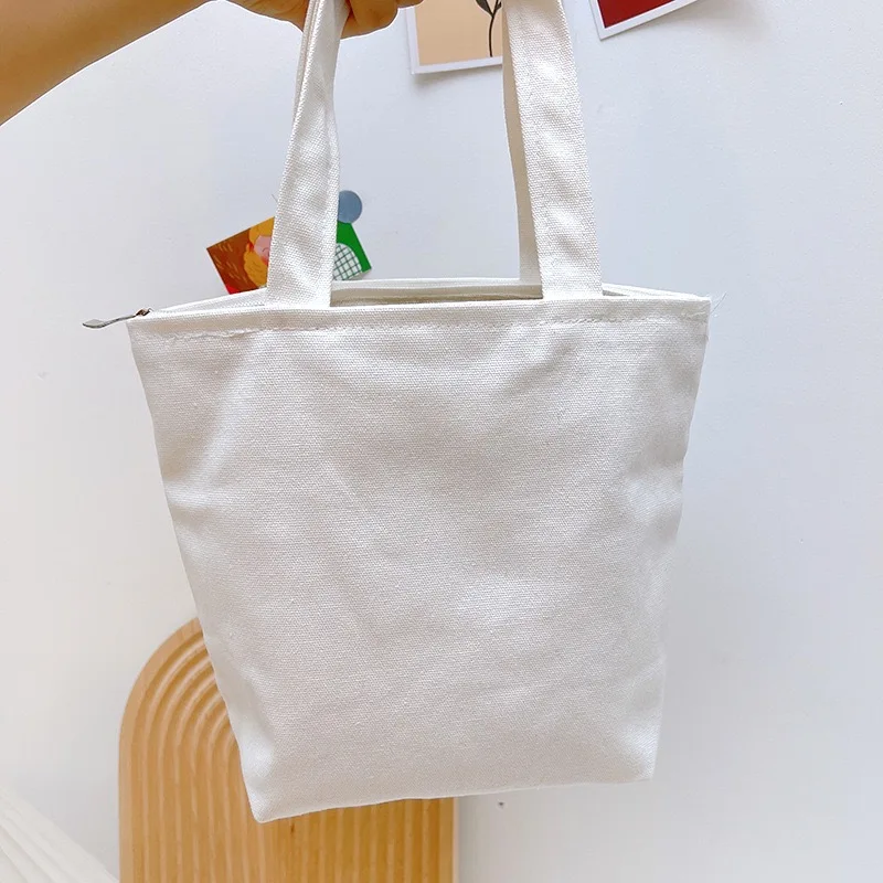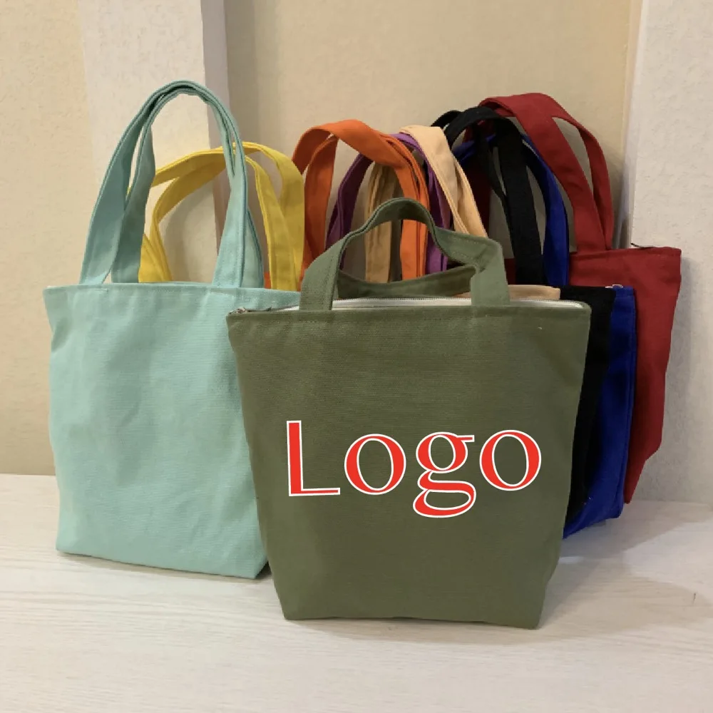 12oz Canvas Zipper Shopping Bag Custom Logo Print Travel Daily Use Solid Outdoor Picnic Storage Lunch Bag with Handle