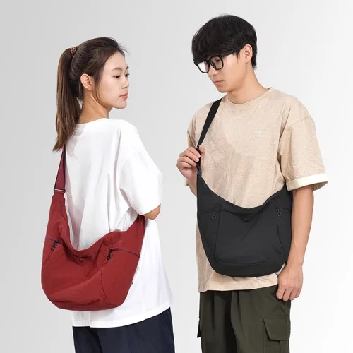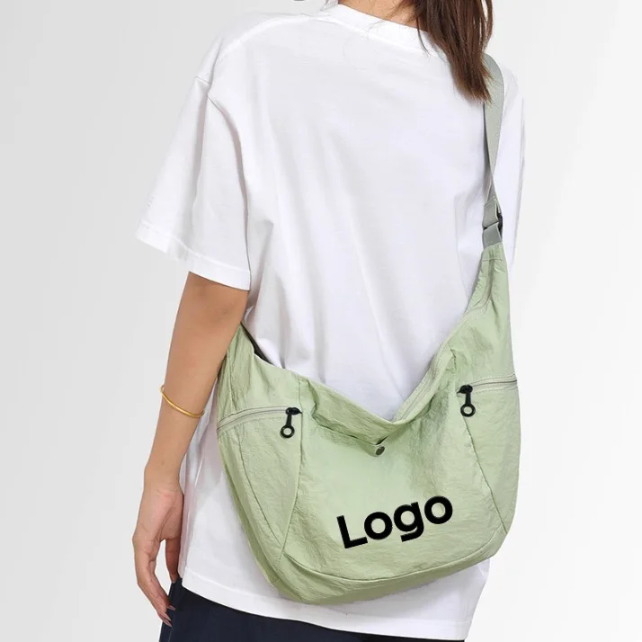 Custom Logo Large Capacity Single Shoulder Nylon Zip Crossbody Bag Unisex Versatile Tote Bag Outdoor Shopping Armpit Horn Case