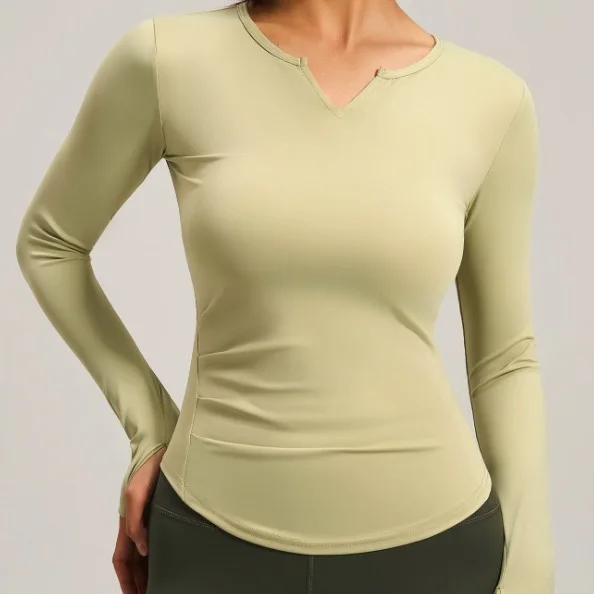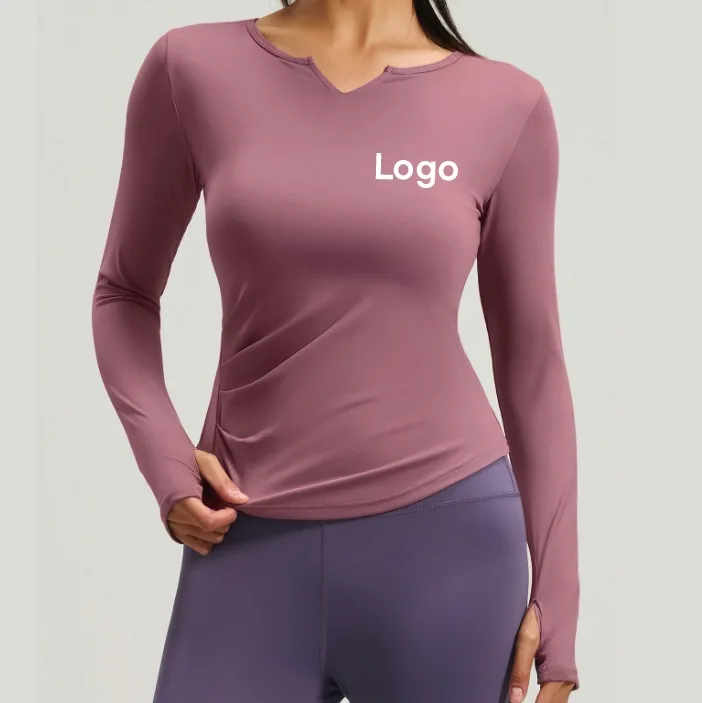 Custom Logo Print Women's Sports V-neck Long-sleeved Seamless Yoga Top Breathable Outdoor Running T-Shirt Workout Fitness Wear