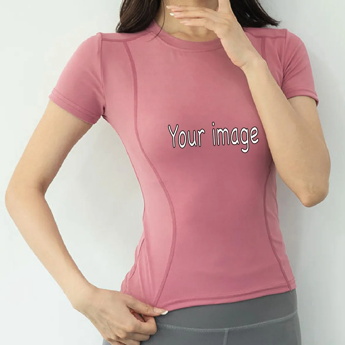Custom Logo Print Women's Yoga Fitness Wear Tight Running Sweat-Wicking Quick-Dry Shirts Slimming Outdoor Yoga Training T-Shirt