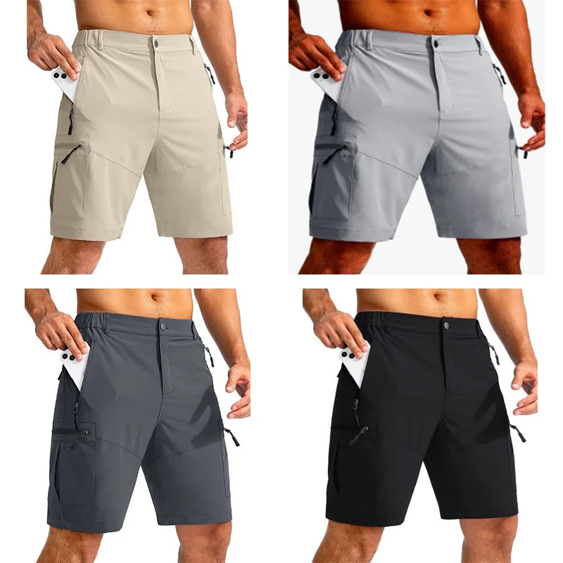 Custom Logo Print Summer New Fashion Men's Multi Pockets Workwear Shorts Large Zipper Casual Quick Dry Running Gym Fitness Pants