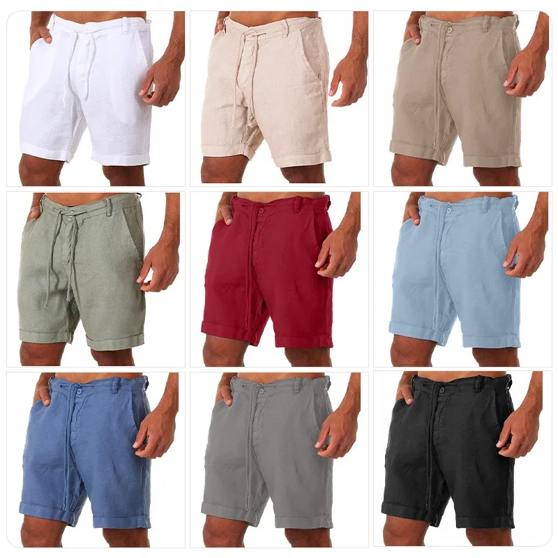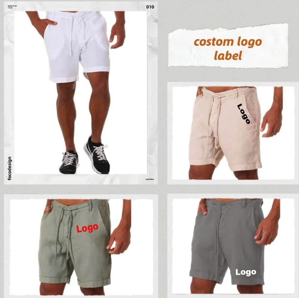 Custom Logo Print Summer Hot-Selling Outdoor Running Shorts Comfort Drawstring Casual Shorts for Men Loose Straight Linen Shorts