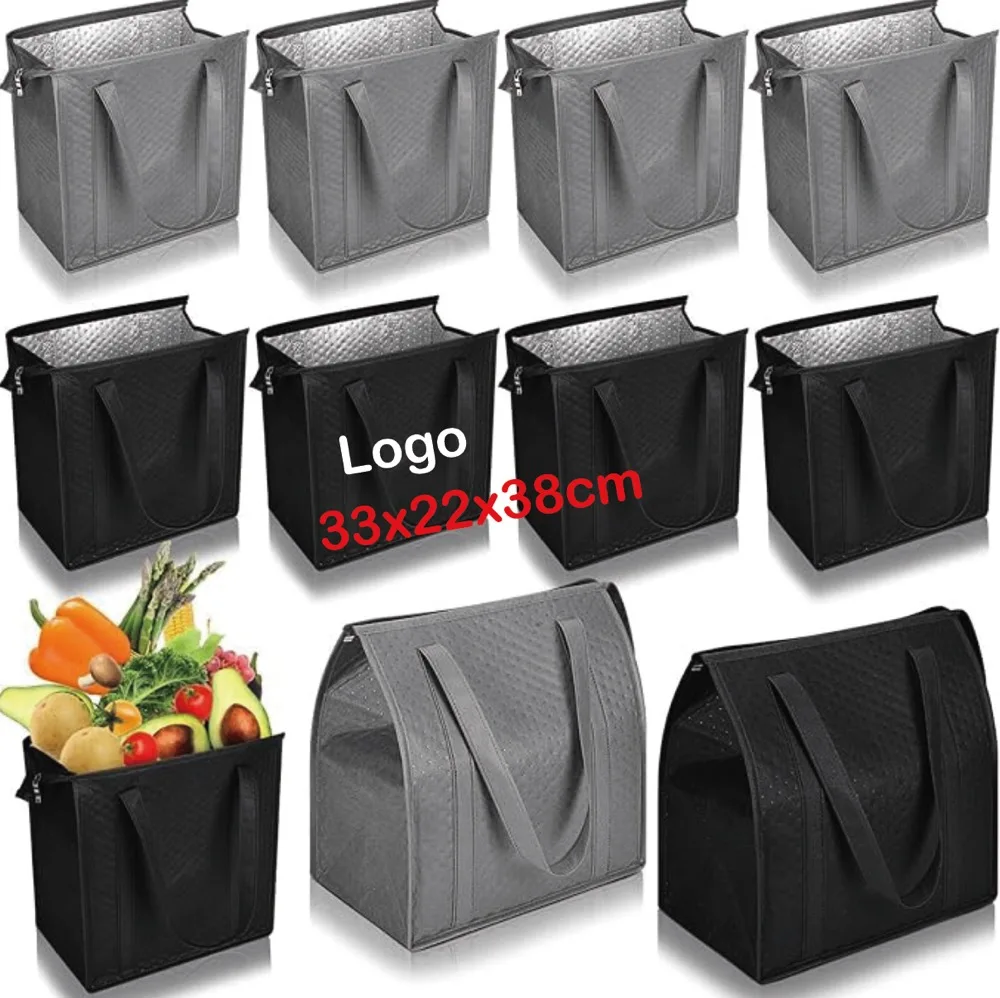 Custom Logo Print Promotional Thermal Cooler Bag Solid Color Non-Woven Lunch Refrigerator Grocery Handbag for Work or School