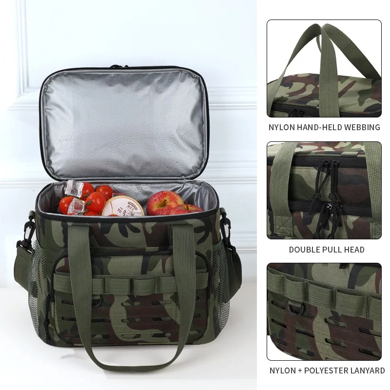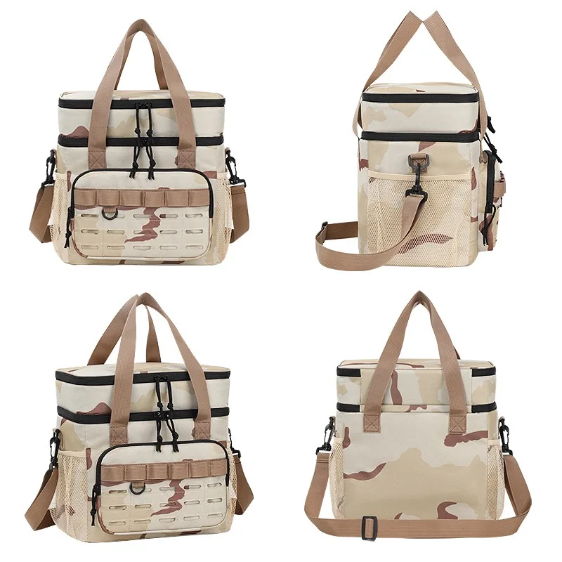 Custom Logo Tactical Insulated Bag 2 Layers Leakproof Picnic Bag Portable Insulated Cooler Shoulder Strap Large Capacity Ice Bag