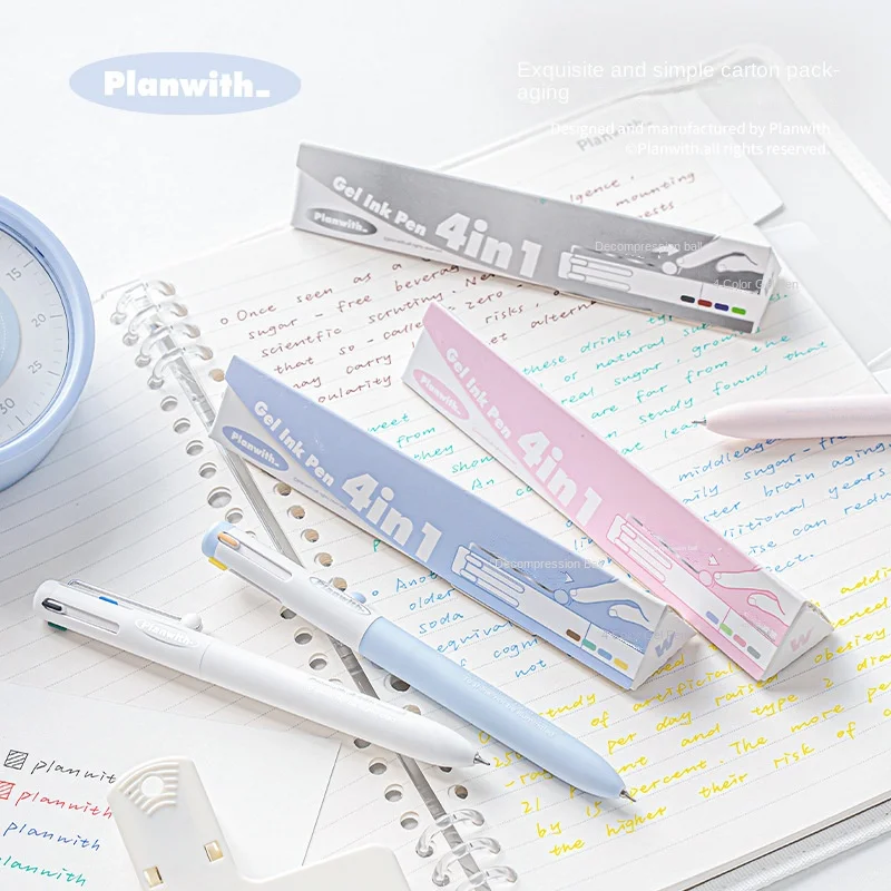 Planwith Friends Plan 4-in-1 Plastic Multi-color Gel Pen 0.5mm Note Highlight Module