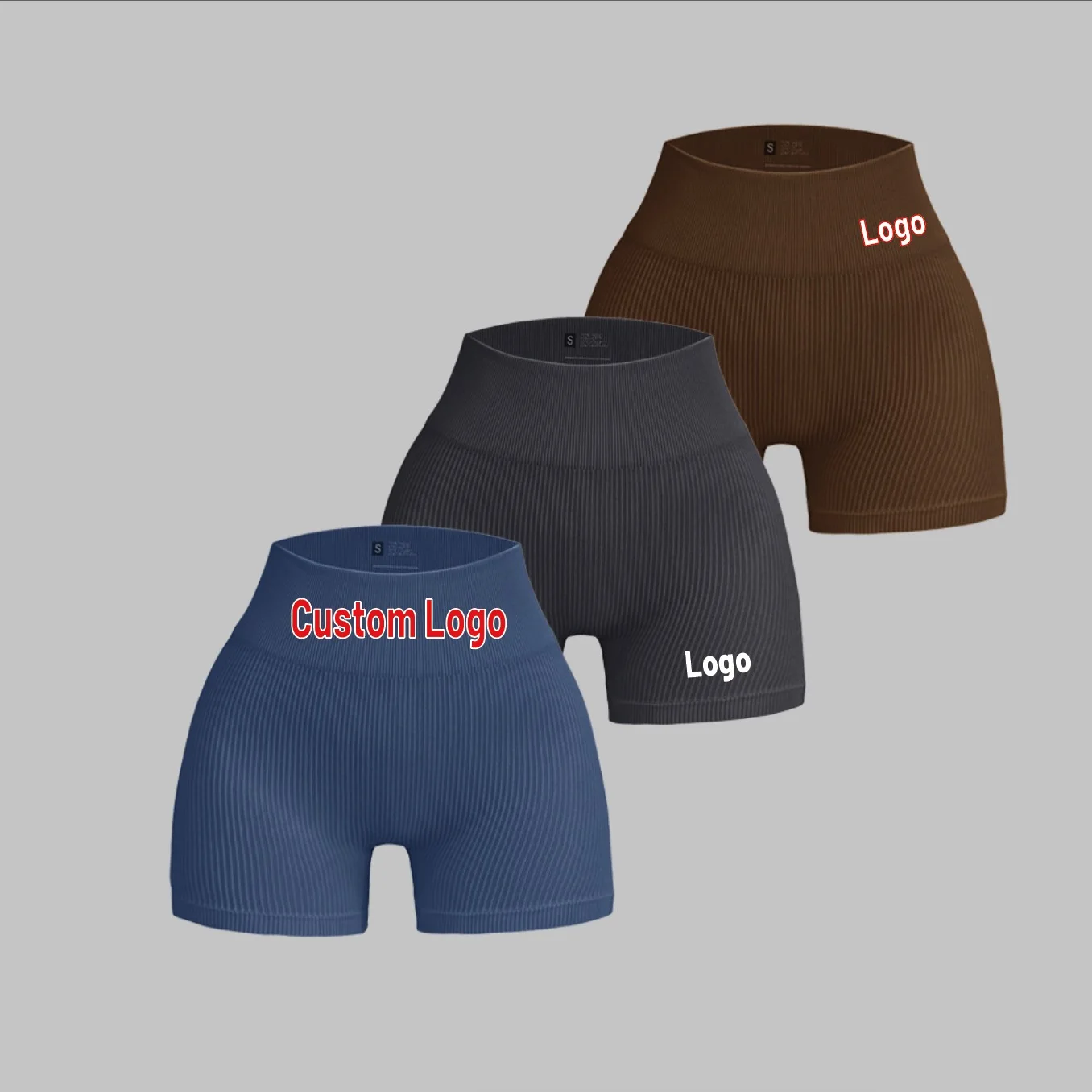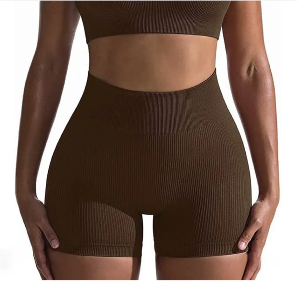 Custom Logo High Waist Outdoor Sport Workout Shorts Women Gym Fitness Ribbed Yoga Seamless Shorts Quickly Dry Cycling Activewear