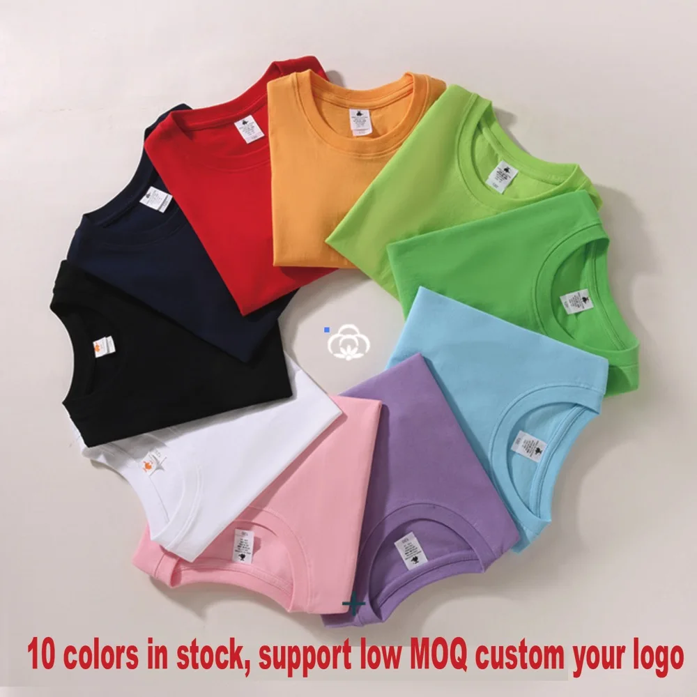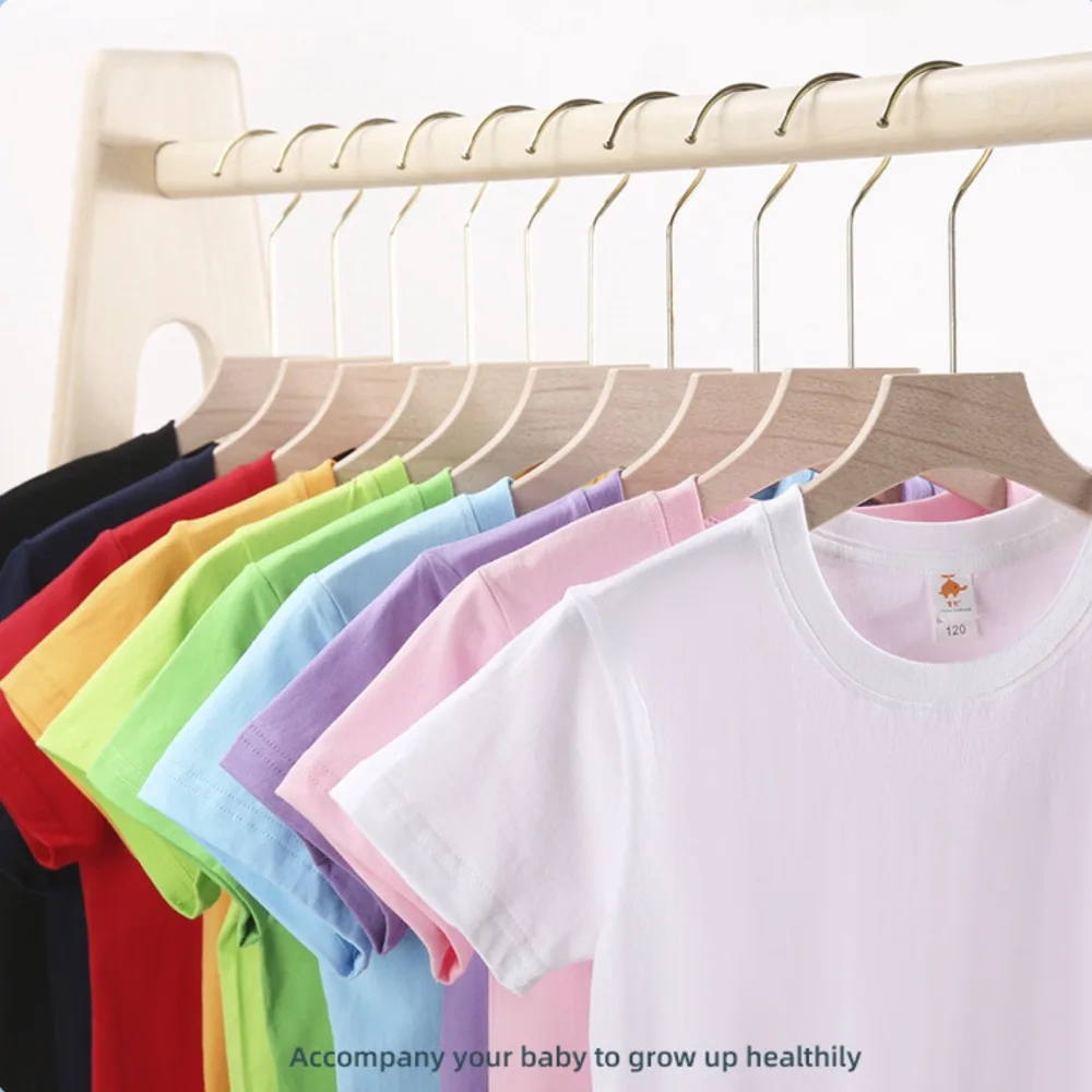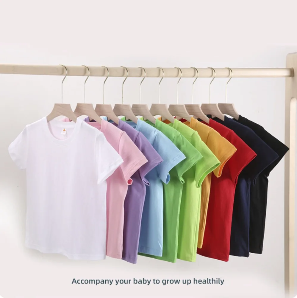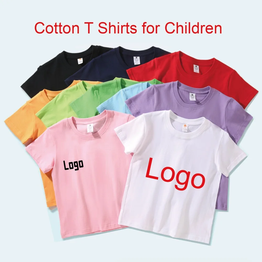 Custom Logo Print Factory Wholesale Cotton Kids t Shirt Solid Color Plain Blank Baby Girl Short Sleeve T-Shirts for Kids Boy