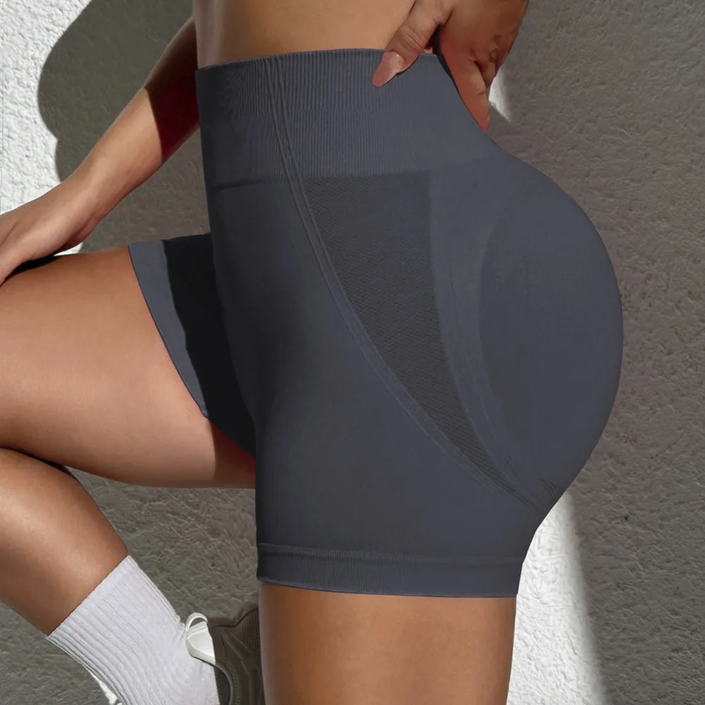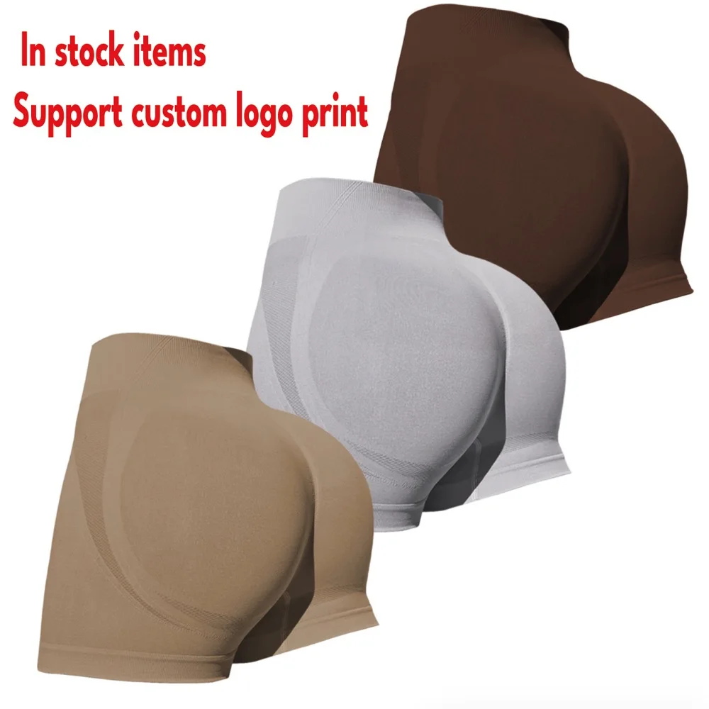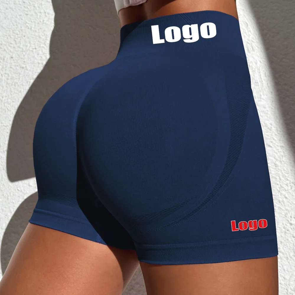 Custom Logo Print Women's High-Waist Seamless Gym Leggings Peach Hip Tight Elastic Waist Sports Fitness Running Shorts