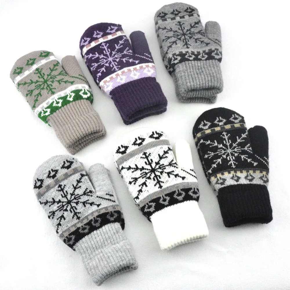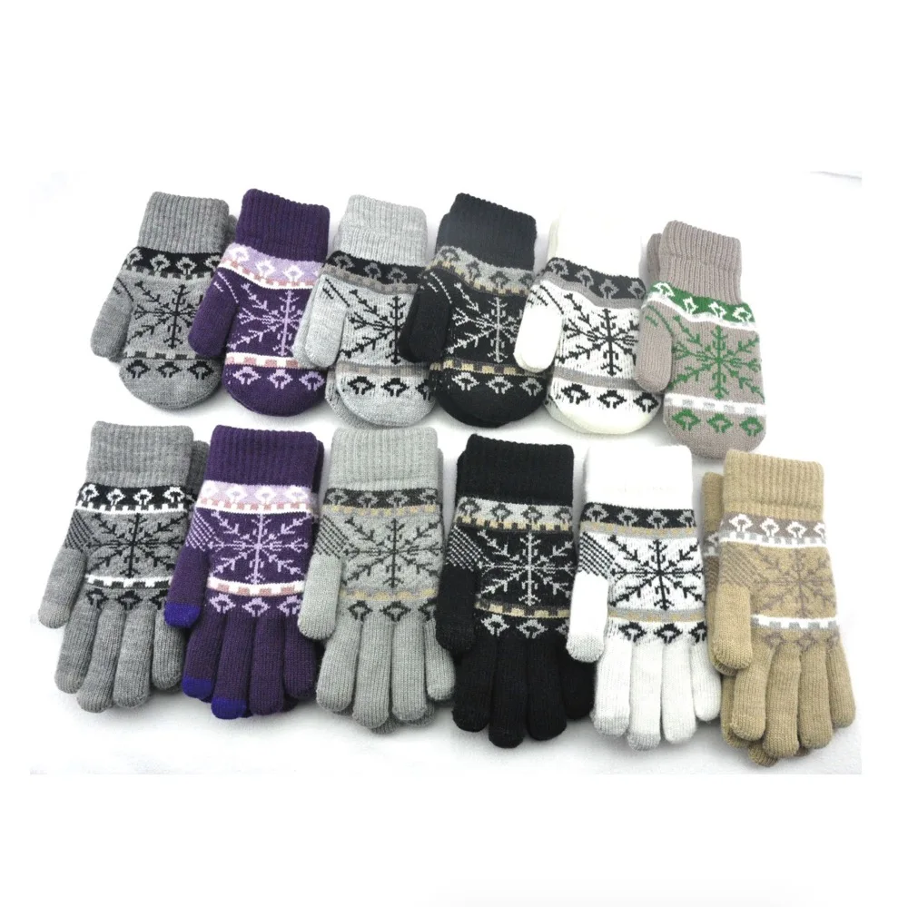 Custom Durable Women's Winter Knitted Gloves Adults Snowflake Pattern Jacquard Design Christmas Gift Knitting Yarn Girls Gloves