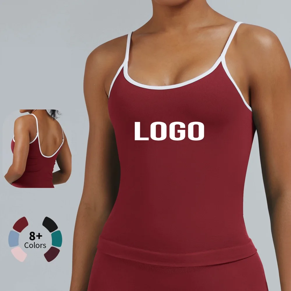 Custom Logo Tight Contrasting Sports Sleeveless Vest Women's Backless Yoga Top Outdoor Running Gym Fitness Nylon Tank Tops Suit