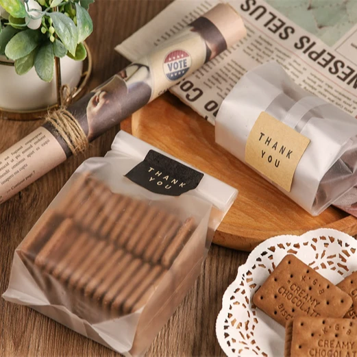 Eco Friendly Translucent Plastic Bags Treat Bags Food Gift Package With Stickers Candy Bakery Bags
