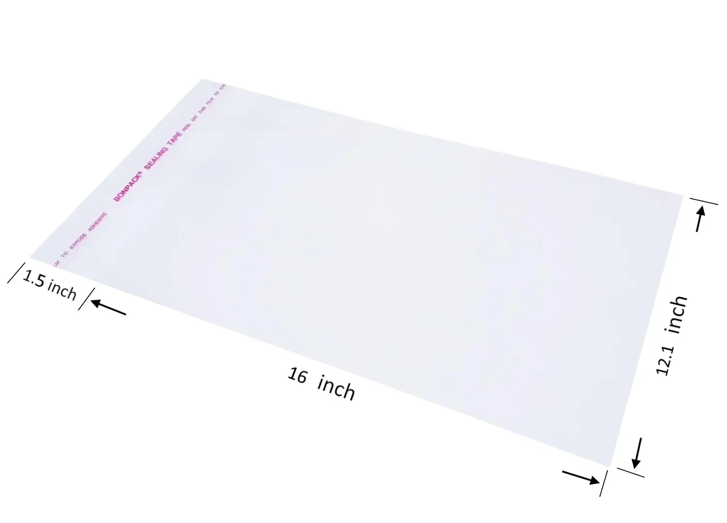 12x16 Inches Clear Cellophane Plastic Bags Resealable Self-Sealing for Convenient Clothing Packaging
