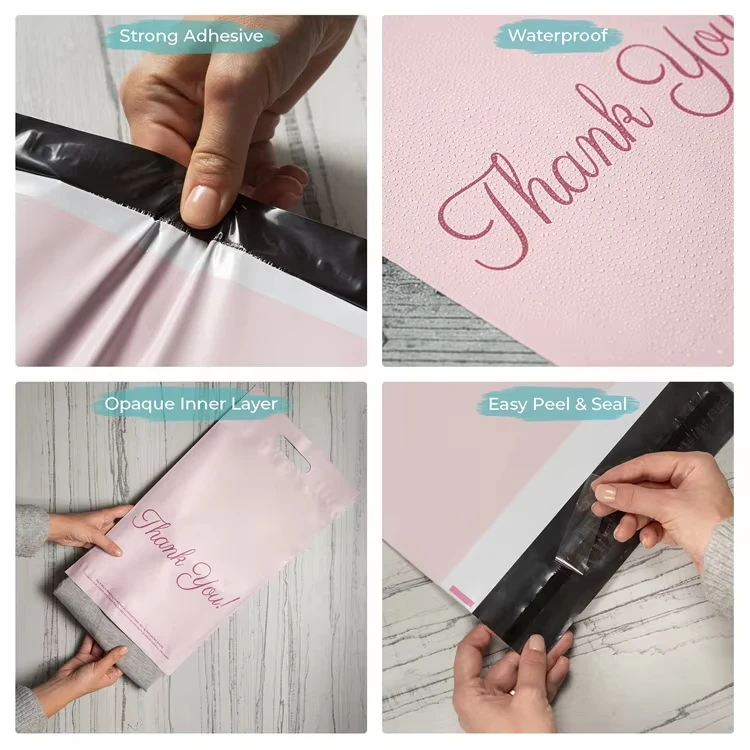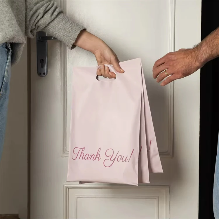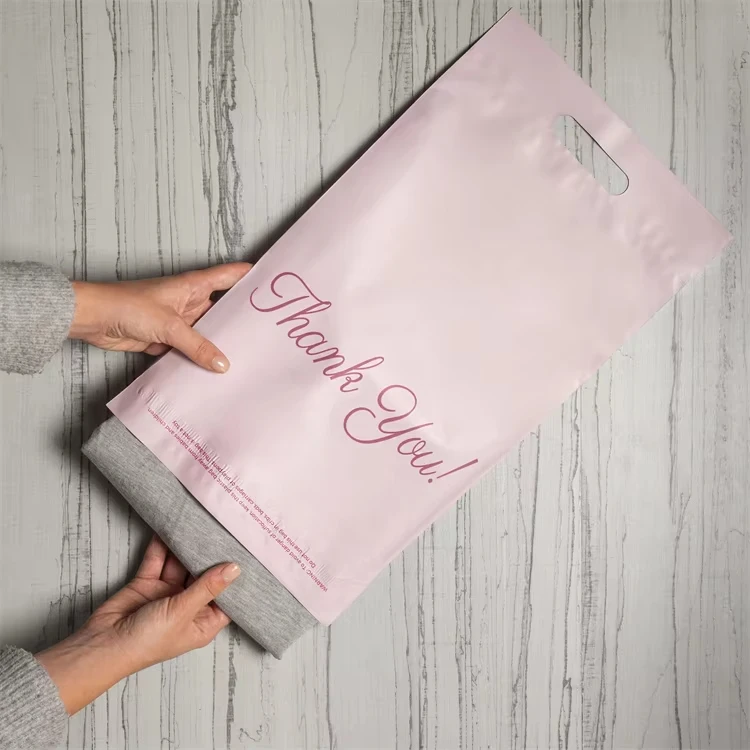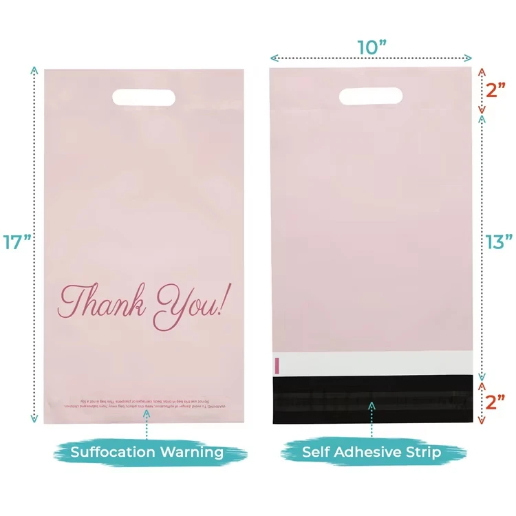 Mailing Bags Custom Logo Biodegradable Thank You Bags Self Adhesive Small Business Shipping Mailing Bags With Handle