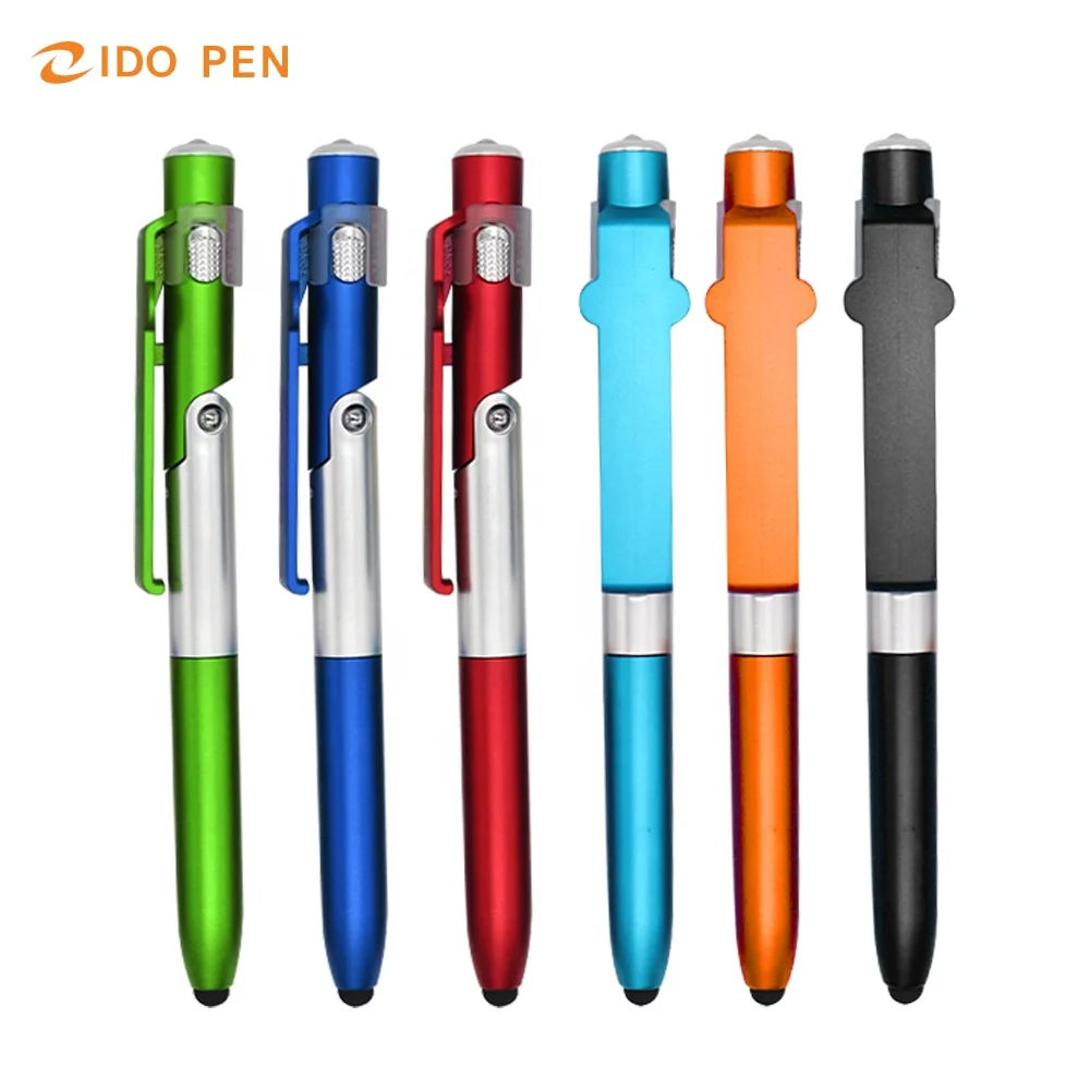 Stationery 4 in 1 Mini Stylus Pen LED Light Pen for Smartphone Keychain Pen with Phone Cleaner Boligrafo OEM