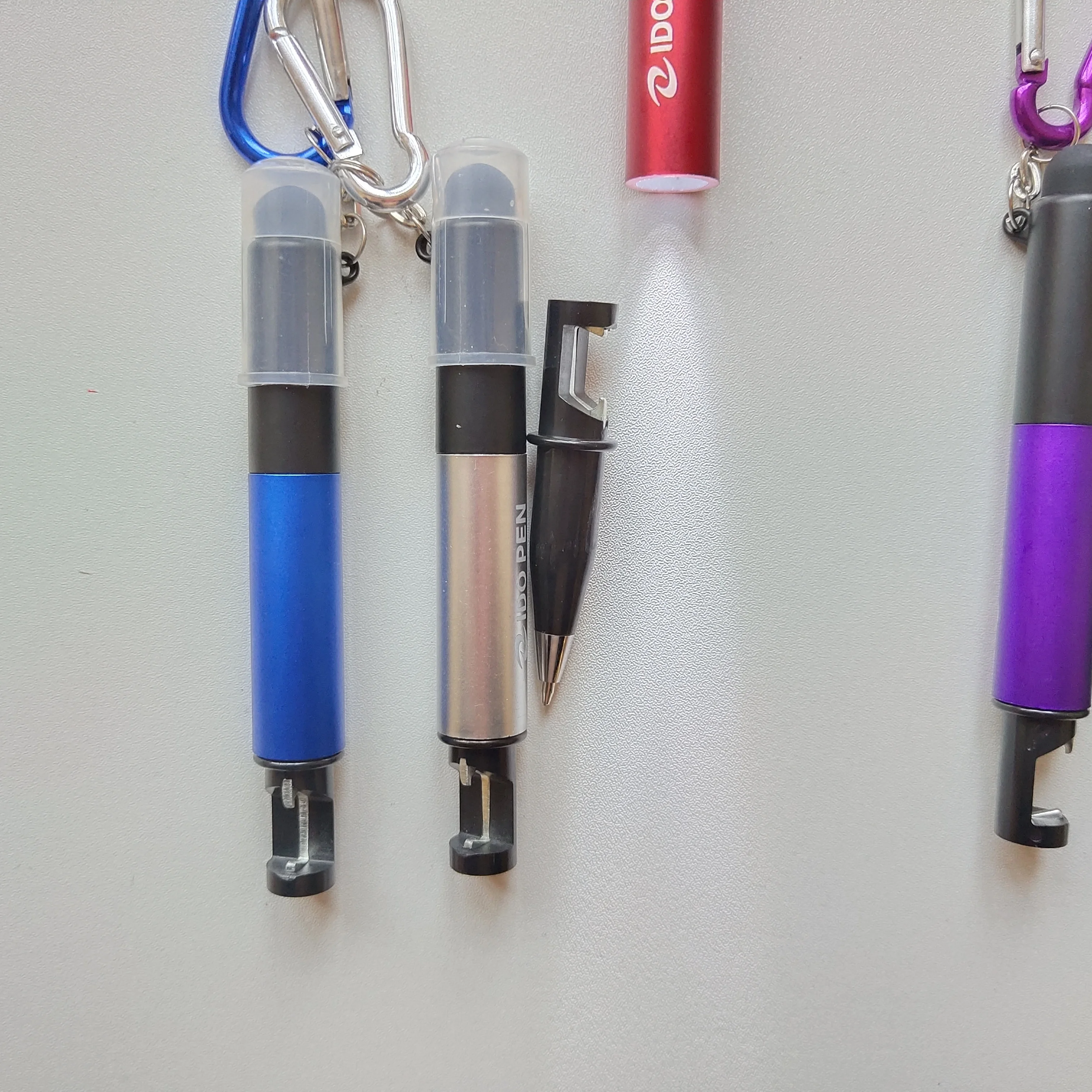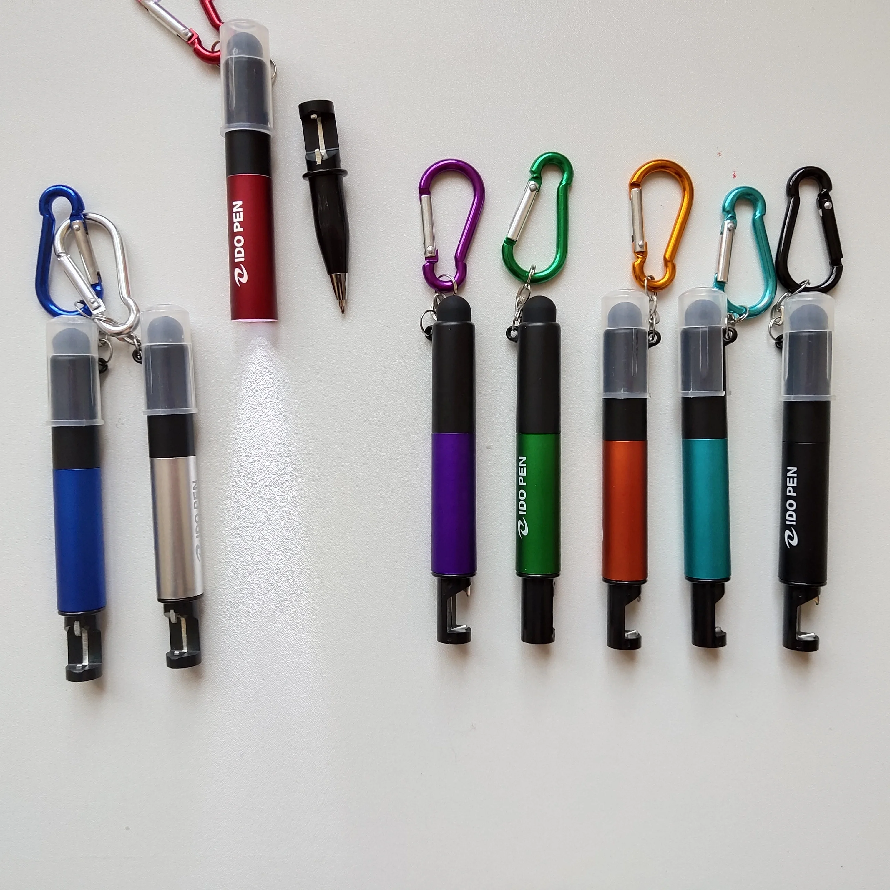 Customized Promotional 4 in 1 Stylus Pen with Bottle Opener and LED Light for Gift Bottle Opener Pen Carabiner Keychain Pen