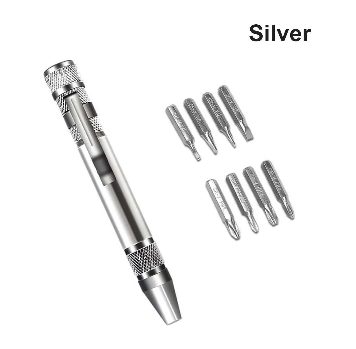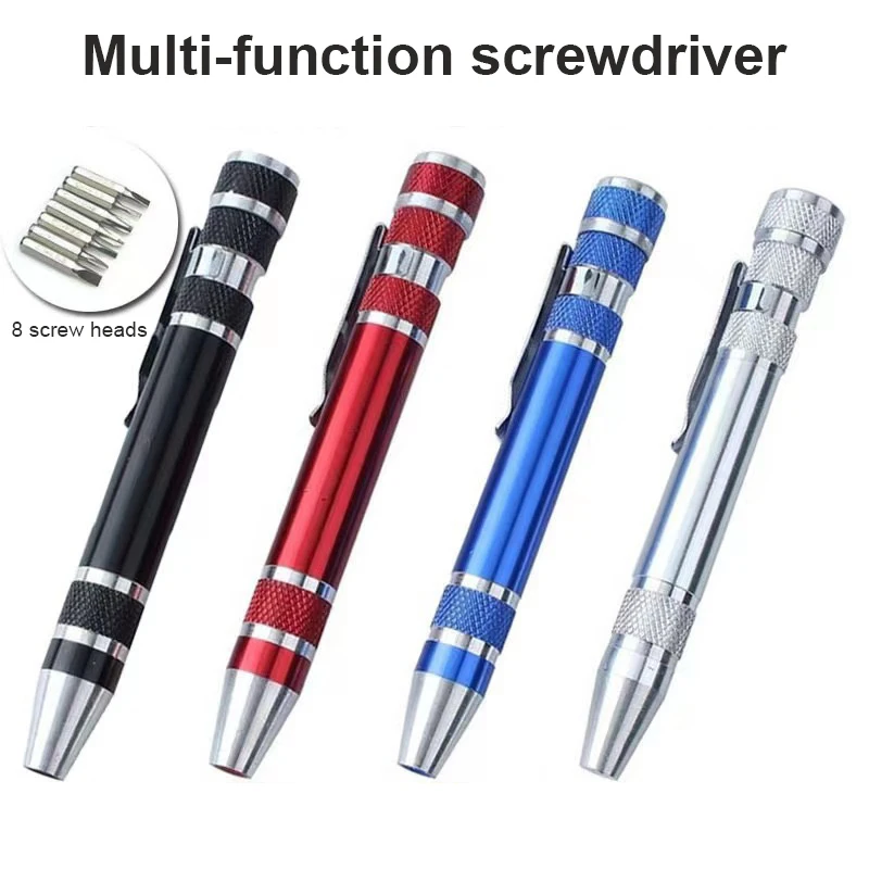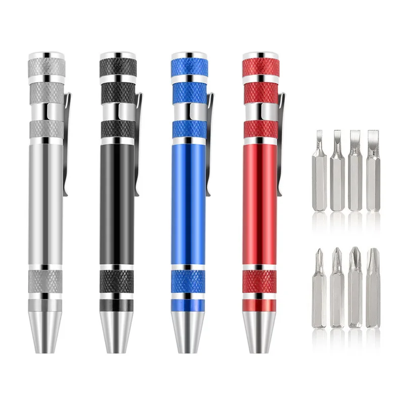 P4956 8-in-1 Aluminum Alloy Pen Manual 0.5mm Writing Width Phillips Flat-Head Screwdriver Set Plastic Material