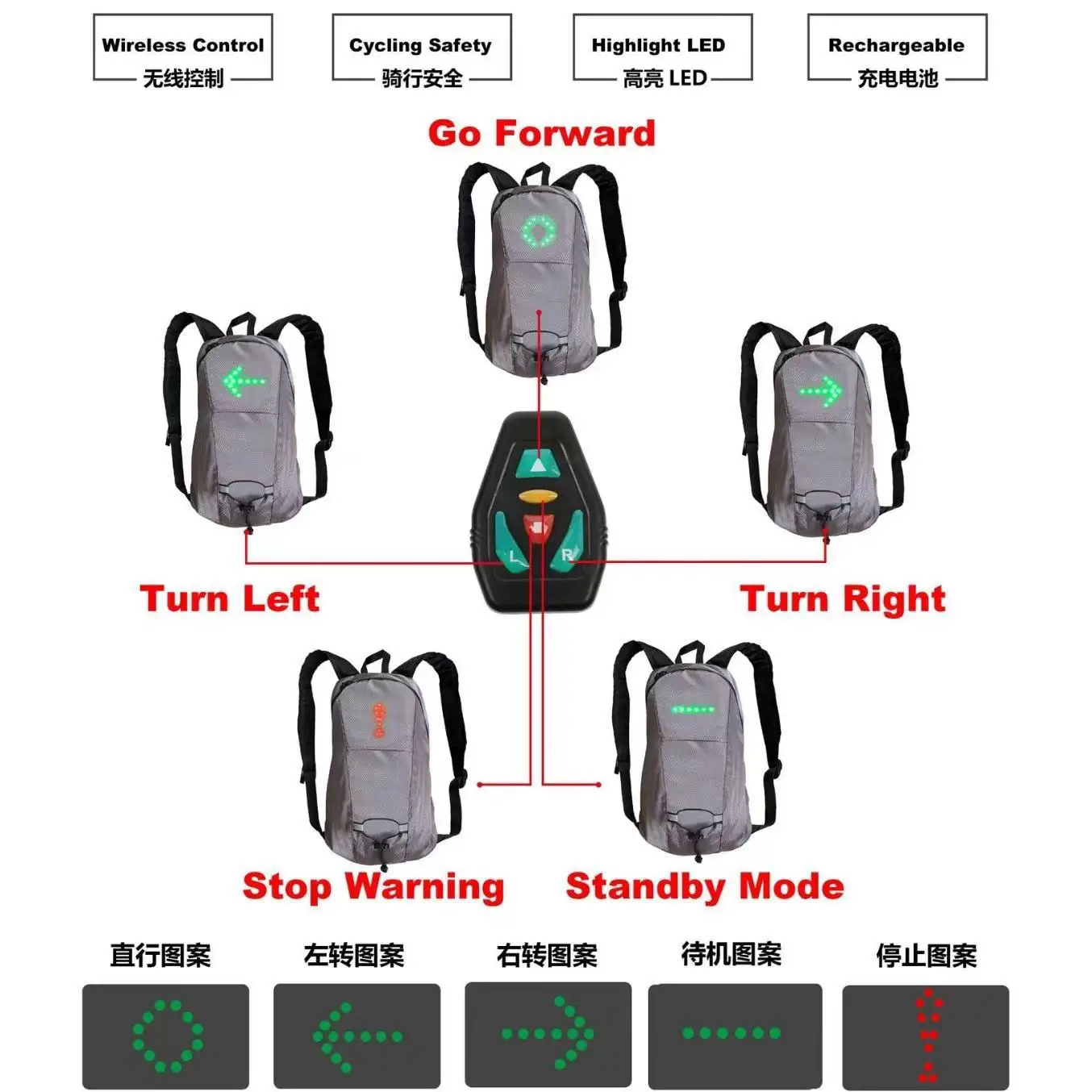 2026 Trendy Cool Custom B8020 School Backpack Vacuum Cycling with Turn Indicator Stop Warning LED Zipper Closure Fashion Style