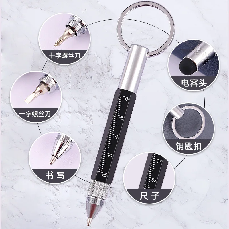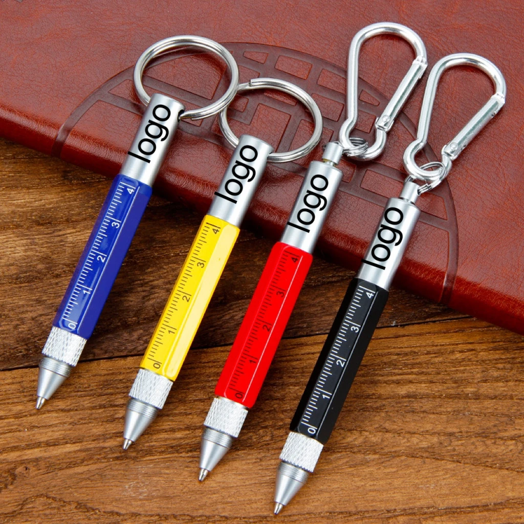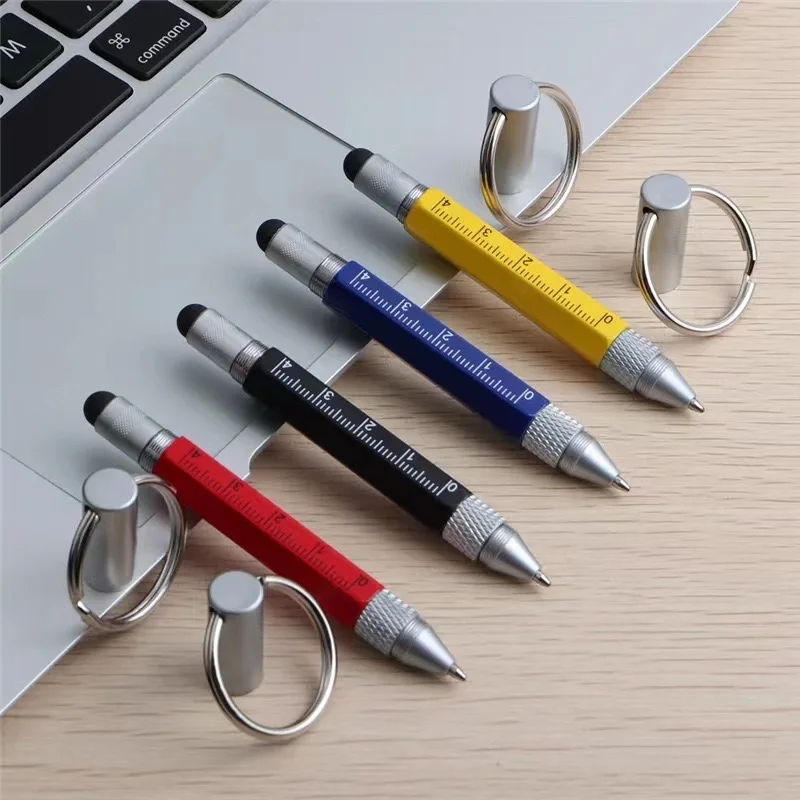 Custom Ballpoint Pen Hot Sale 6-In-1 Multi-colored Keychain1.0mm Screwdriver Level Touch Screen Tool Pen Custom Ball Pen