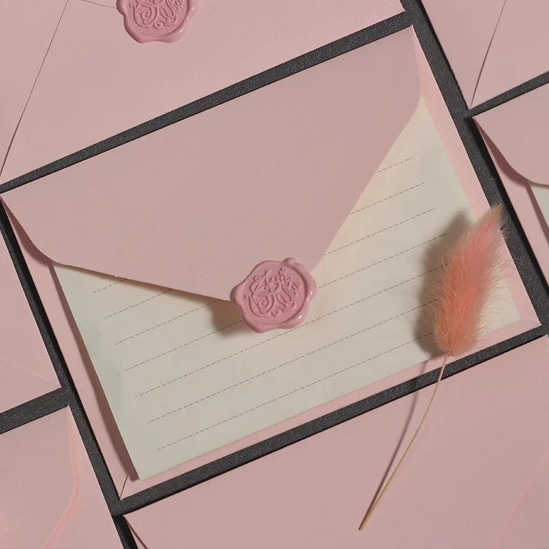 Cherry Blossom Powder Kraft Wallet Envelope Set Beautiful Fresh Small Letter Paper for Fire Paste for Gift Wrapping