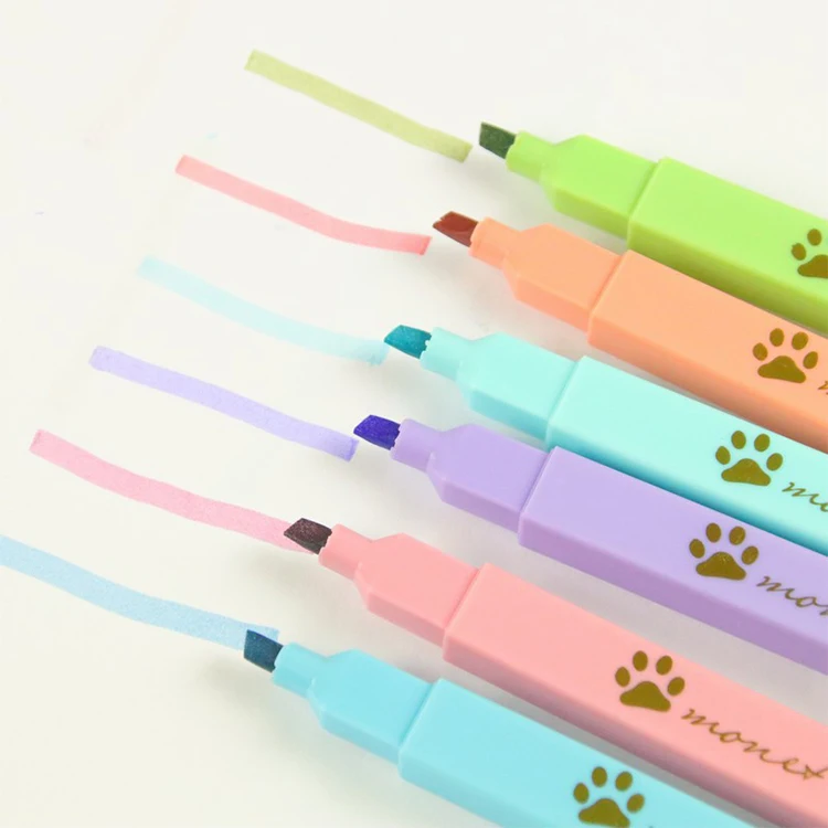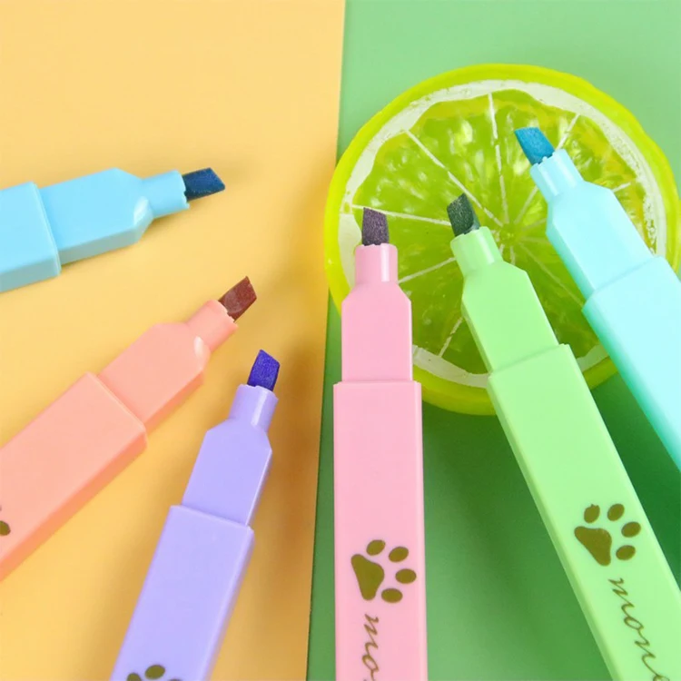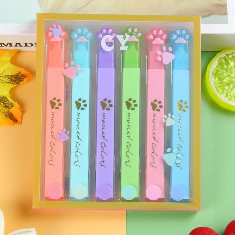Wholesale 6-Color Cute Cat Claw Highlighters Set Oblique Flat Tip School Stationery 240 Sets Per Carton Good Quality Marker Pen