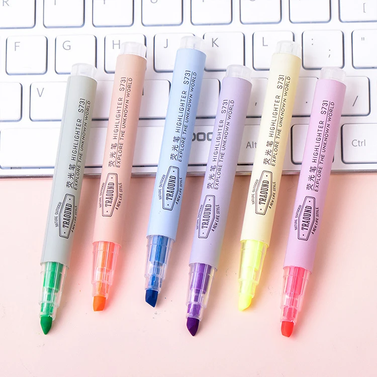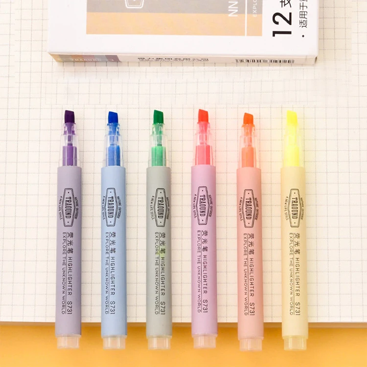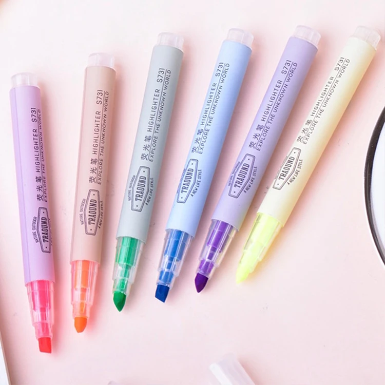 Custom School Supply Stationery Set with Oblique Brush Tip Highlighters in 6 Colors