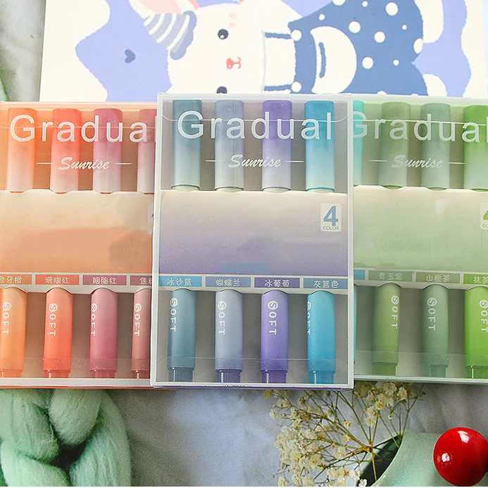 H01 Wholesale Pastel Style Marker Pen Set Gradient Highlighter with Oblique Brush Tip for School 360 Sets Per Carton