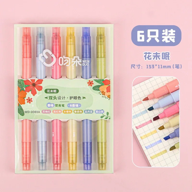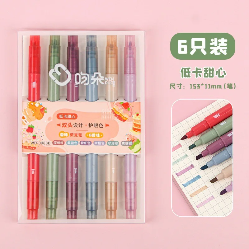Wholesale 320 Sets per Carton Double-Head Watercolor Marker Pen Oblique Fragrance Girl Hand Account Highlighter School