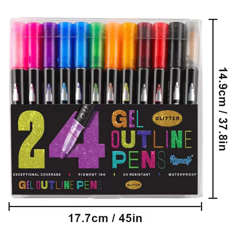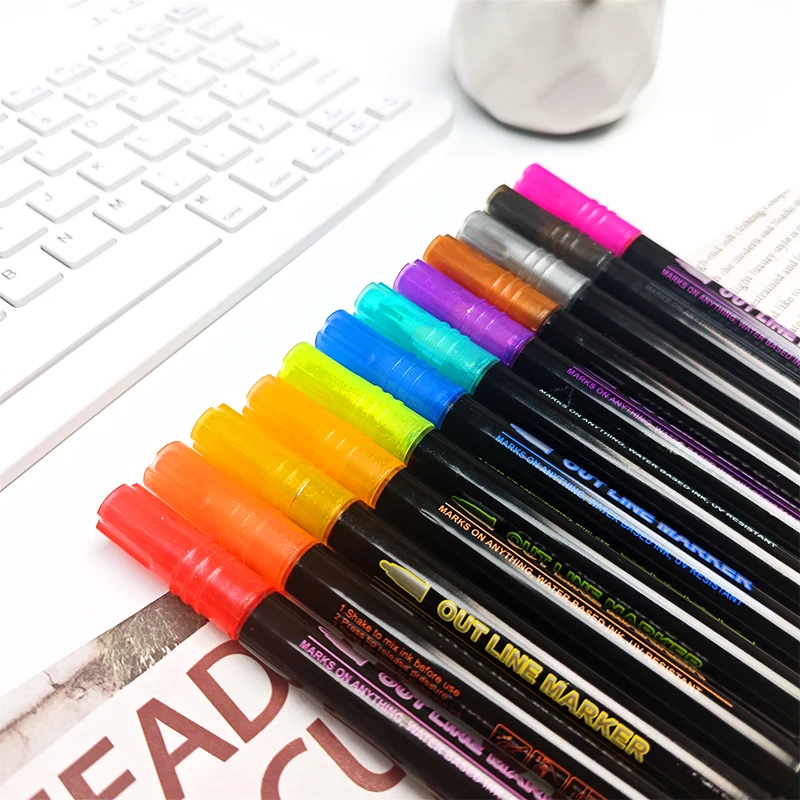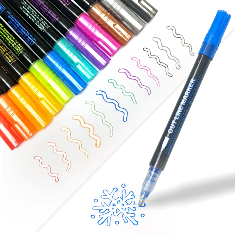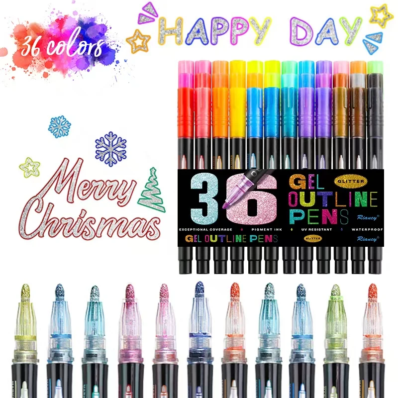 H32 Customized Logo 12/24/36 Silver Double Line Holiday Card DIY Marker Pen Set Card Making Supplies for Drawing Color Pen