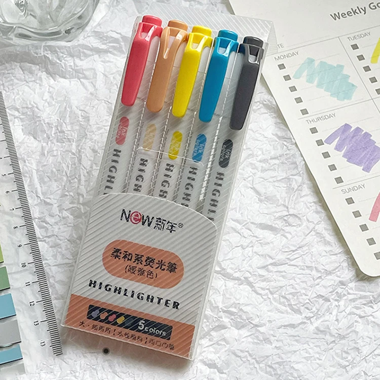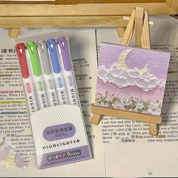 H23 Custom 15-Color Pastel Stationery Highlighter Set with Oblique Brush Tip and Shiny Palette for School Supply