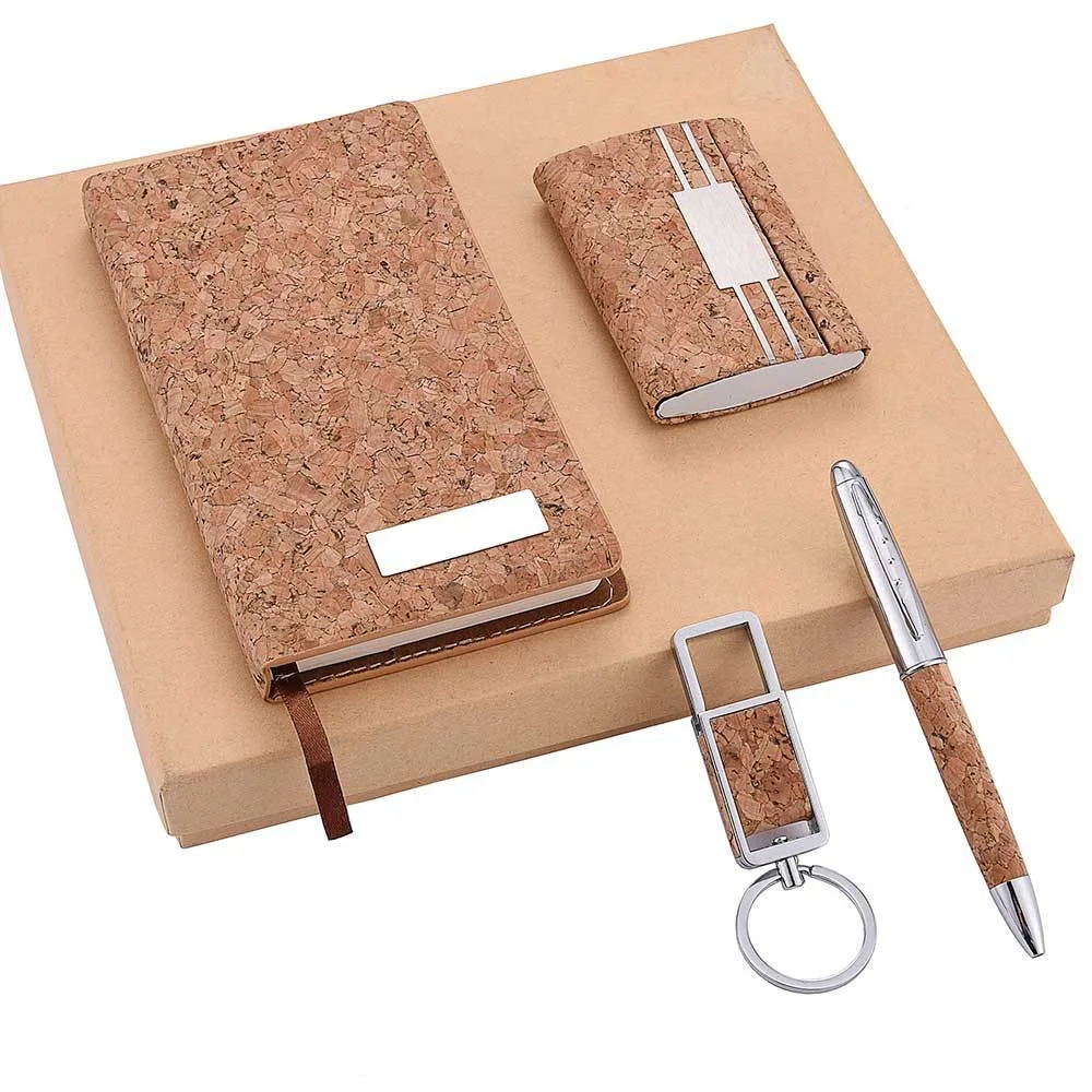 A2808 Custom Business Journal Notebook Set A6 Size 100 Inner Pages Four Piece Key Chain Cork Journal Notebook Set