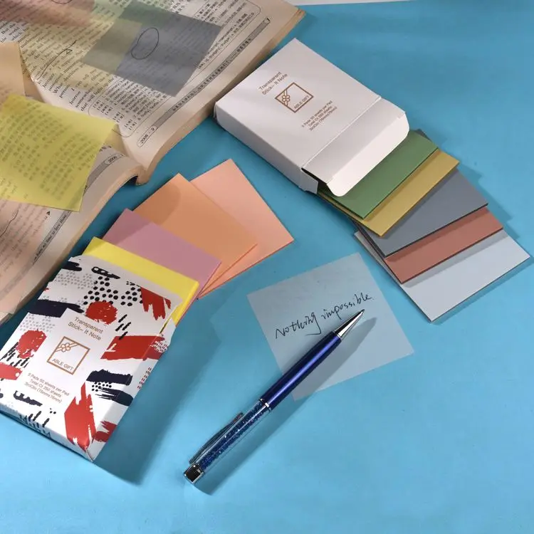 S3004 Custom 3x3'' Pastel Morandi Self-Adhesive Memo Notepad 16 Colors PET Material for School Office Transparent Stationery Pad