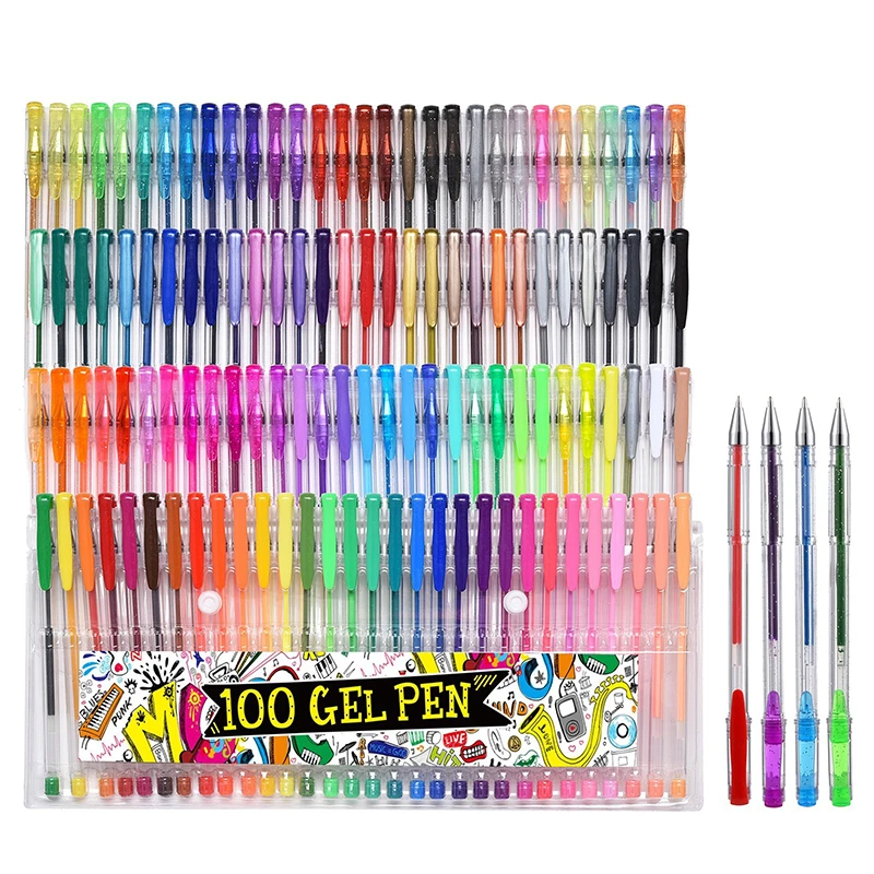 G5012 Gel Pen 80 100 120 Colors Multi-Color Gel Pen 0.8mm PVC & ABS School Supply with Glitter Ink Wholesale Gel Pen