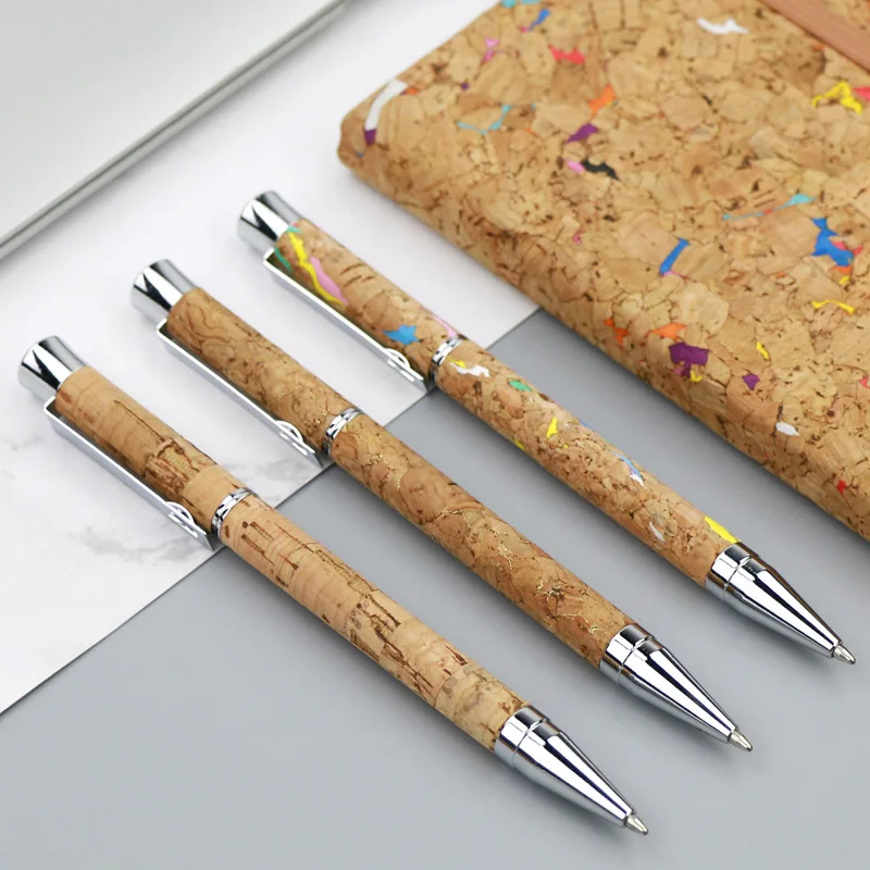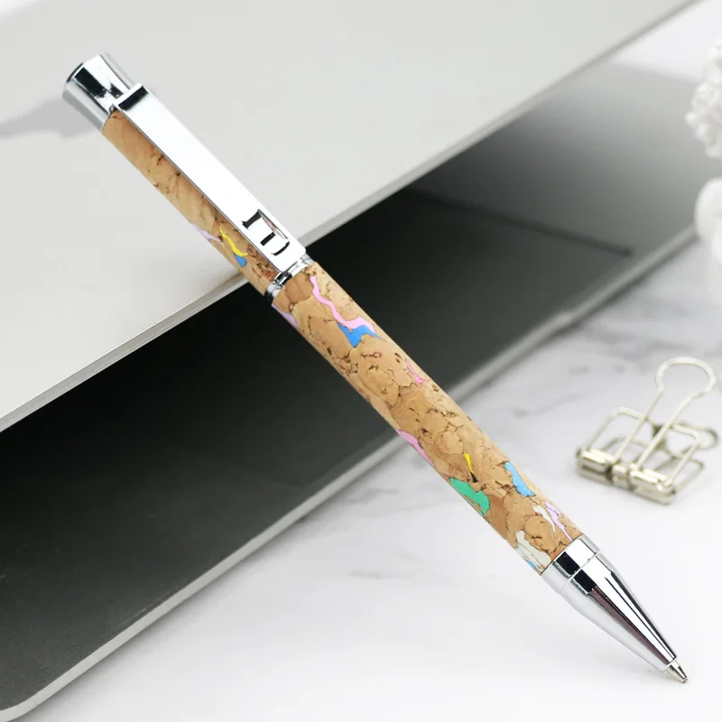 P4600 Creative Metal Rotary Ballpoint Pen Cork Grain 1.0mm Writing Steel Paper Enterprise Gifts Personalized Logo Printing