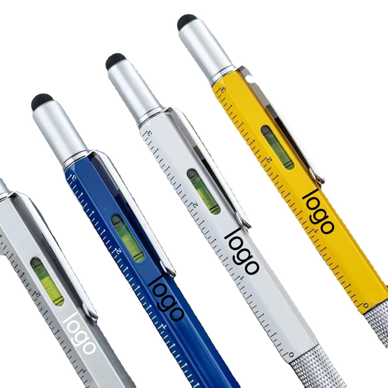 Custom Ballpoint Pen 6 in 1 Wholesale Stylus Ballpoint Pen with Screwdriver Level Calipers Promotional Office Custom Ball Pen