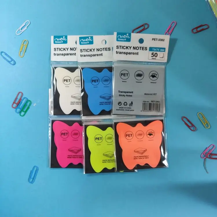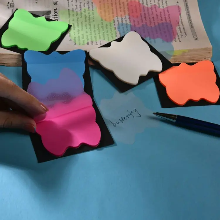 S3039 Custom Stationery butterfly Sticky Note Transparent Sticky Note Neon Notepad School Supply Stationery Set