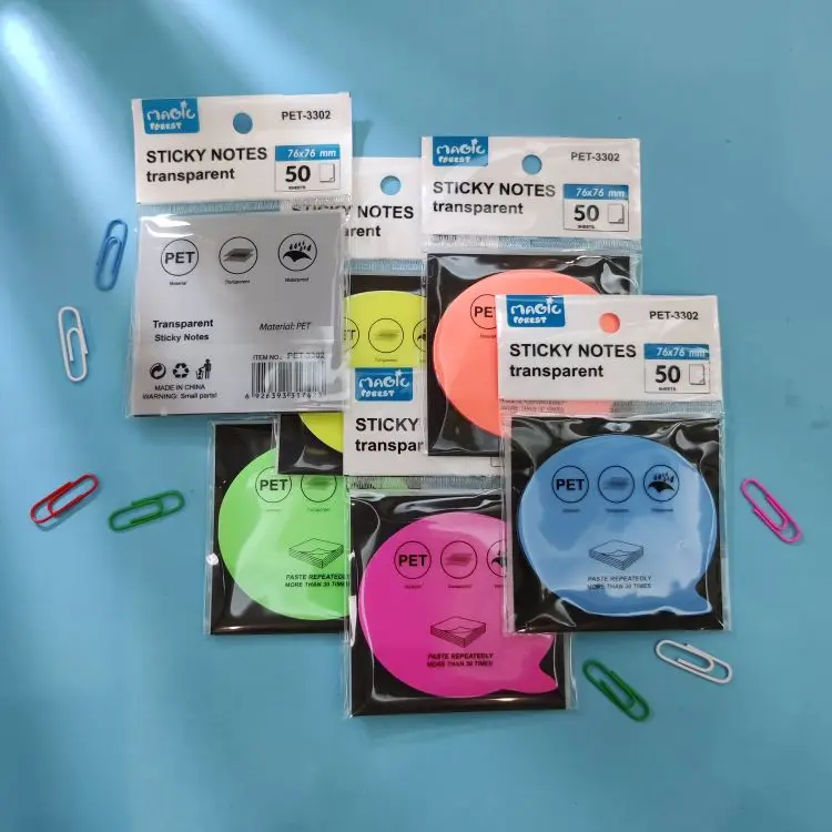 S3031 Transparent PET Material Magnetic Office School Memo Pad Waterproof Dialogue Bubble Neon Notepad for Gift Self-Adhesive