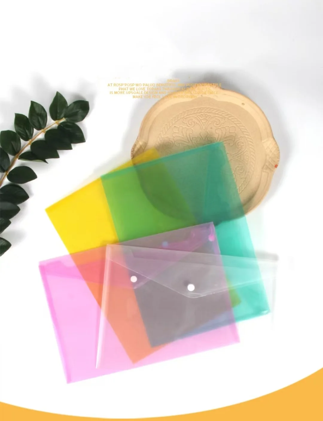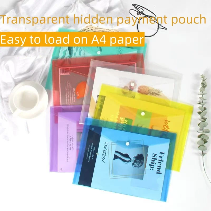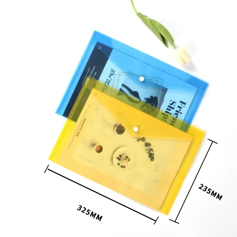 F1735 A4 PP Plastic Fastener Button Office File Bag with Hot Color for Document Storage and Folder Accessories File Bag Document
