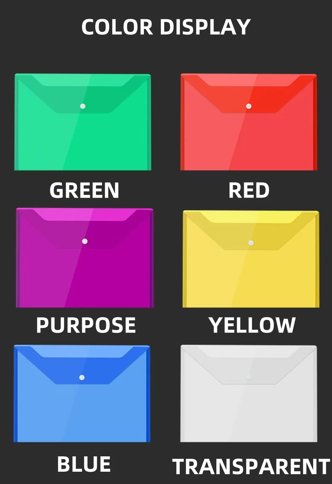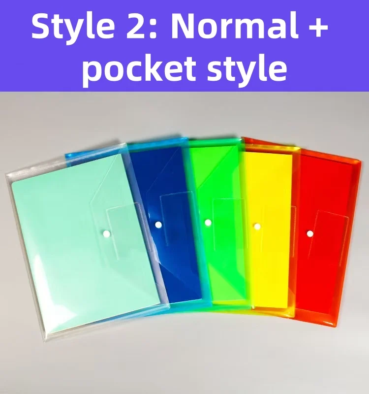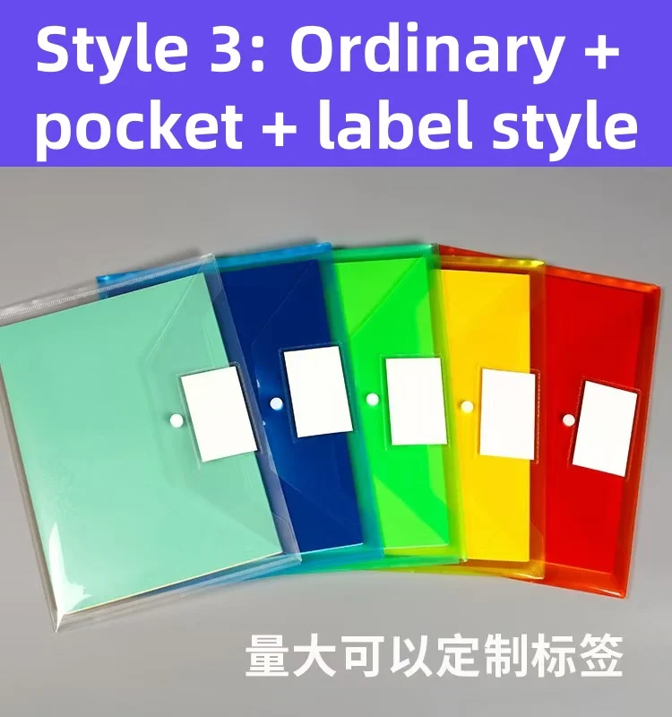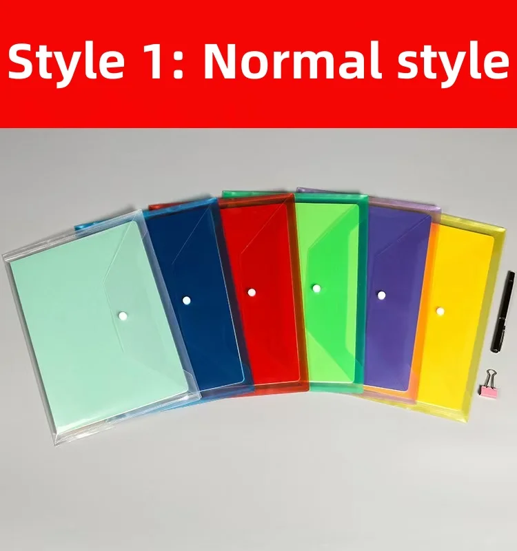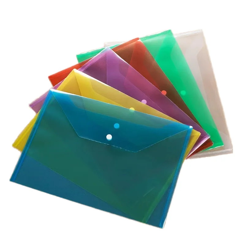 F1737 Wholesale A4 Transparent Document Bag Colorful Waterproof Plastic with Button Label File Bag Document