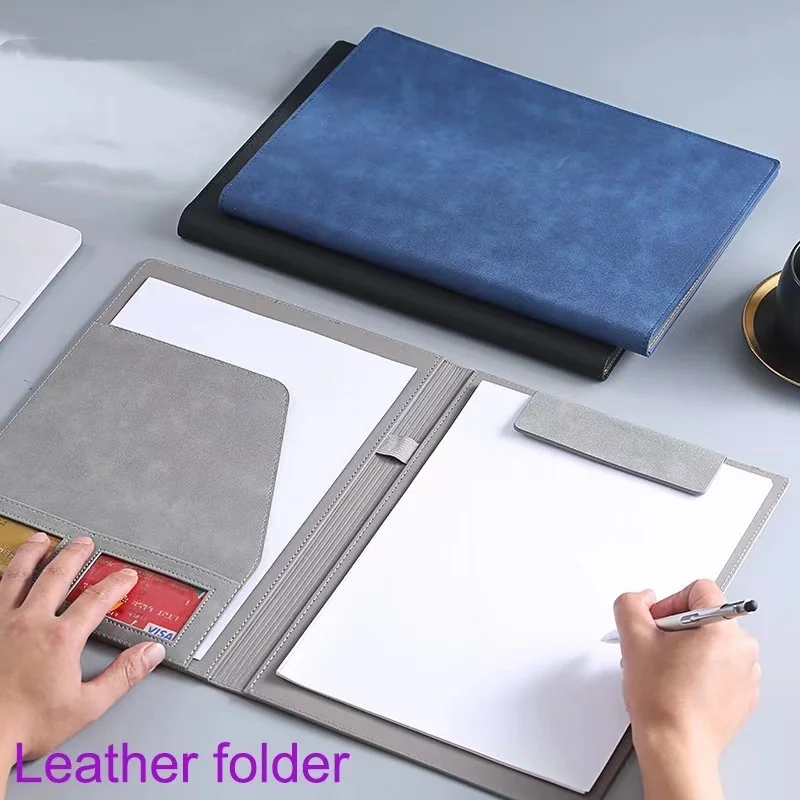 F1709 Wholesale Multi-Functional A4 Leather Folder Magnetic Clip Business Office Document Sales Contract Organizer Document Bag