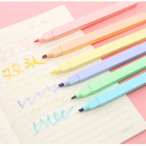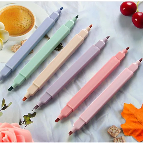 H05 Wholesale Morandi Macaronb Double-Headed Stationary Highlighter Novel Oblique Brush Tip 216 Sets Per Carton for School Use