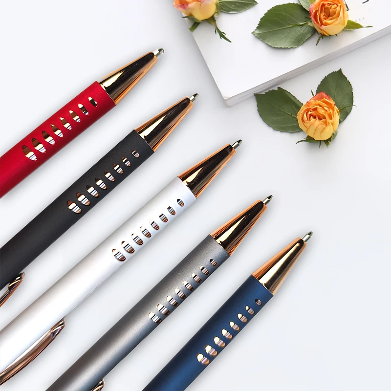 P5011 Custom Metal Business Smooth Ballpoint Pen 1.0mm Black Ink Rose Logo Engrave for Journal Writing Ballpen