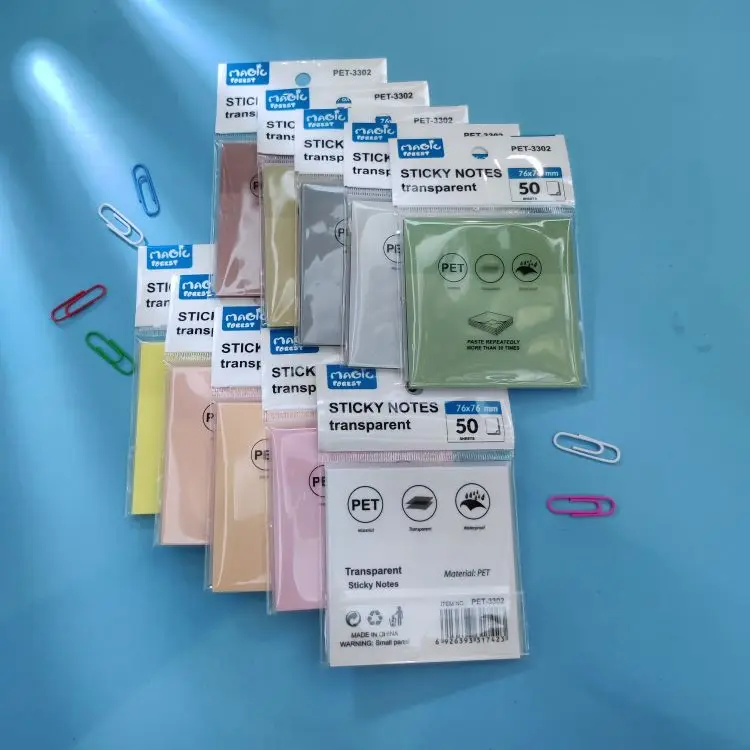 Square Shape School Office Use Waterproof PET Sticky Note Pad Custom Logo Self-Adhesive Memo Pad