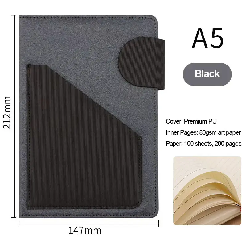 A5 Business Notebook Hardcover Leather-bound Diary for Office Meetings and Work