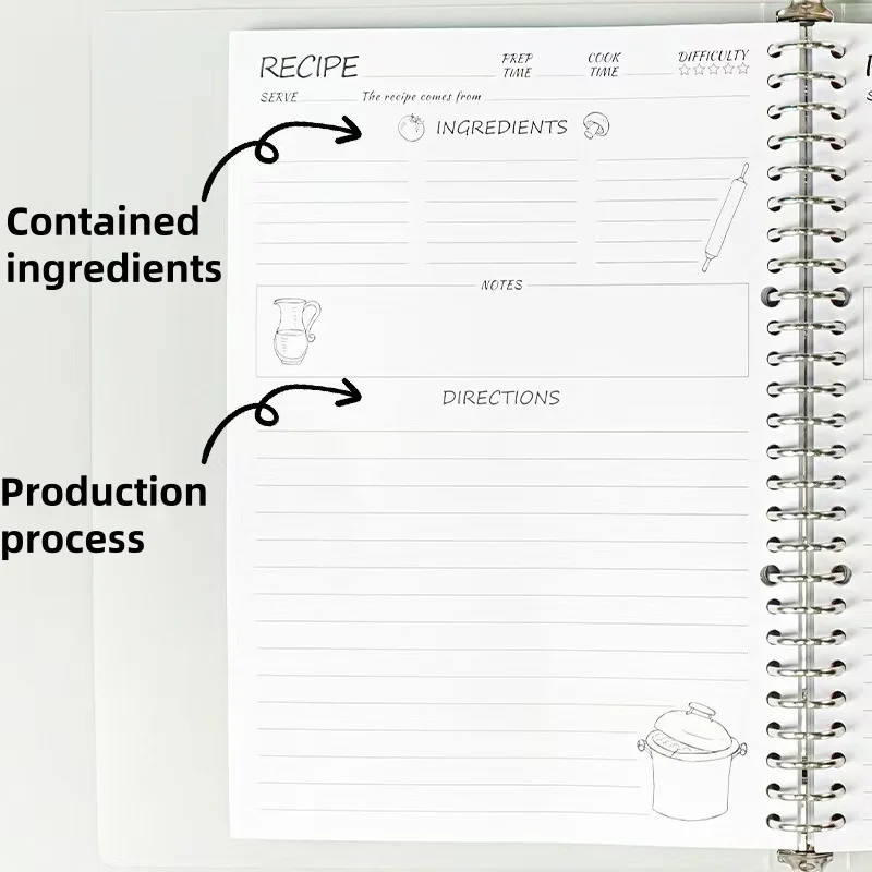 N0001 Custom Eco-Friendly A4 Notebook Set DIY Recipe Loose-Leaf Planner PP Housing Printed Cover Replaceable 80 Sheets 100gsm