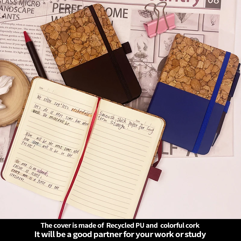 N939 Mini Notebook Cork Hardcover for Recycled Paper 96 Sheets Wholesale Promotion Use