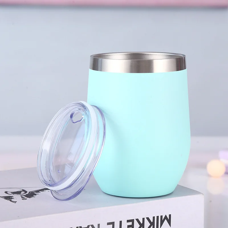 D5041 Metal Coffee Cup Stainless Steel with Lid 12oz Eggshell Cup Vacuum Double U-shaped Potbelly Cup
