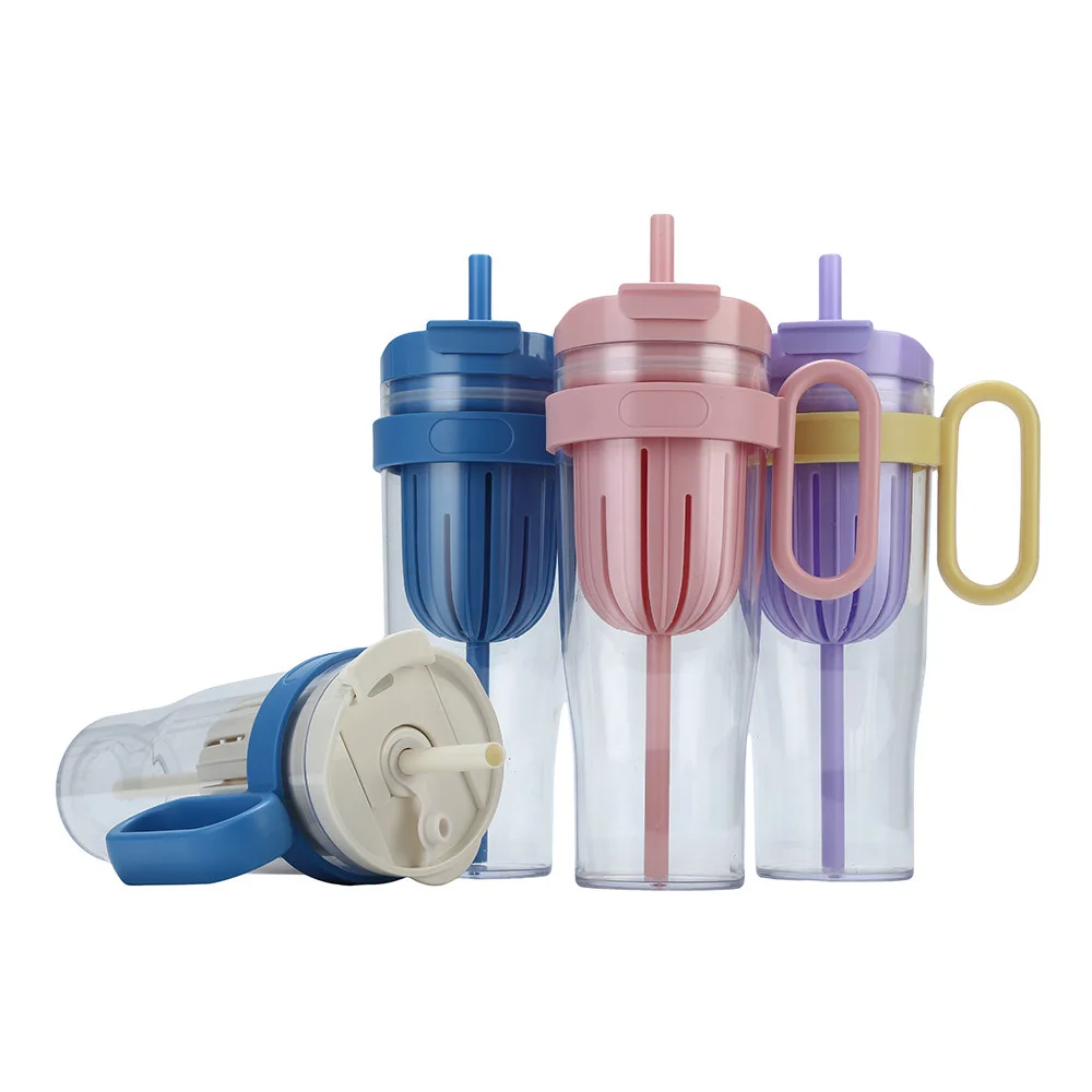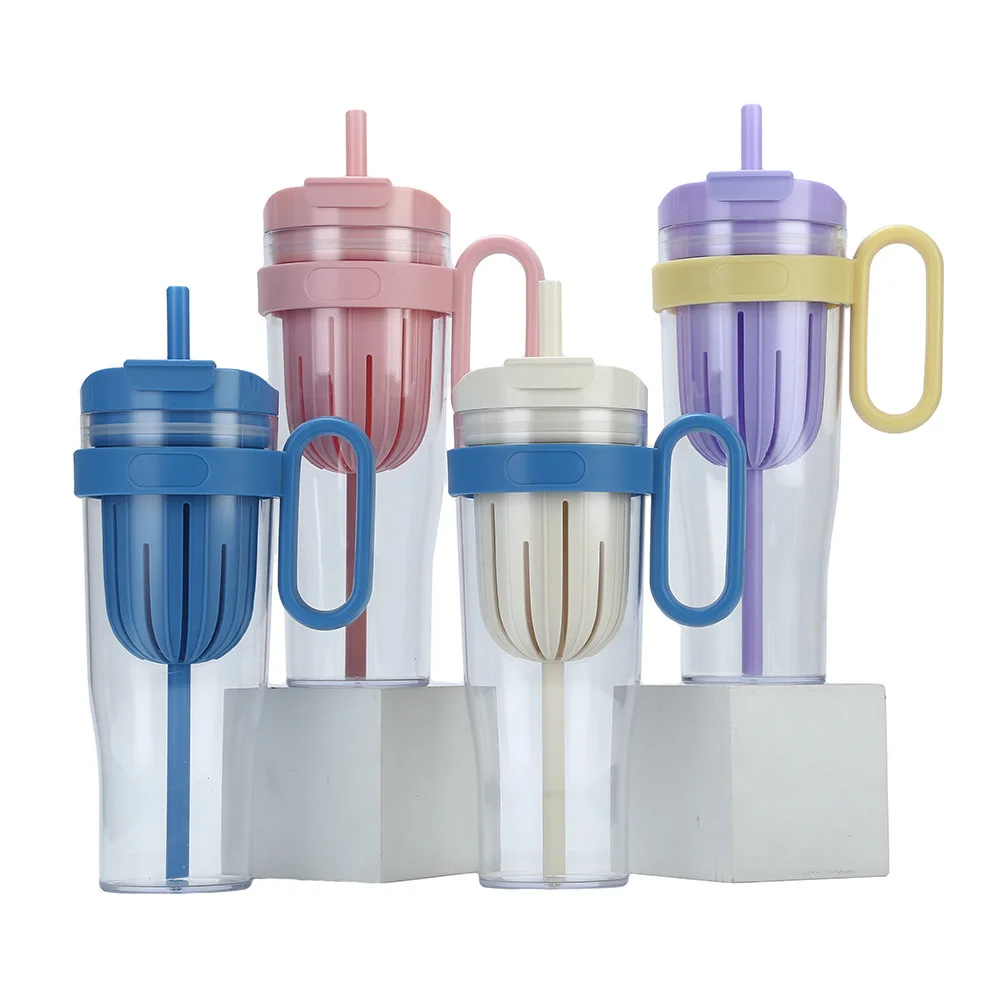 D62 Plastic Cups with Lids and Straws Capacity Plastic Sippy Cup with Handle Car Cup Water